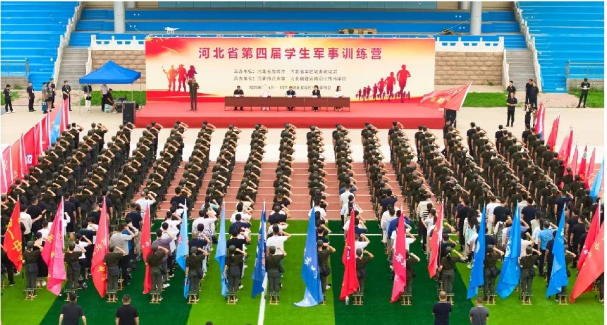 2025年7月6日至11日,河北省第四届学生军事训练营在河北省军区综合训练队盛大开营。本届训练营由河北省教育厅、河北省军区战备建设局主办,河北师范大学和河北轨道运输职业技术学院联合承办。训练营设有军事理论教学、军事技能训练、军事观摩体验、军事文化活动等科目内容,组织涵盖战术、射击、战地救护等6大类军事课目的比武竞赛,汇聚了全省9所高校(第三届竞赛本专科组一等奖获奖单位)及45所国防教育示范校高中的精英学子同场竞技。