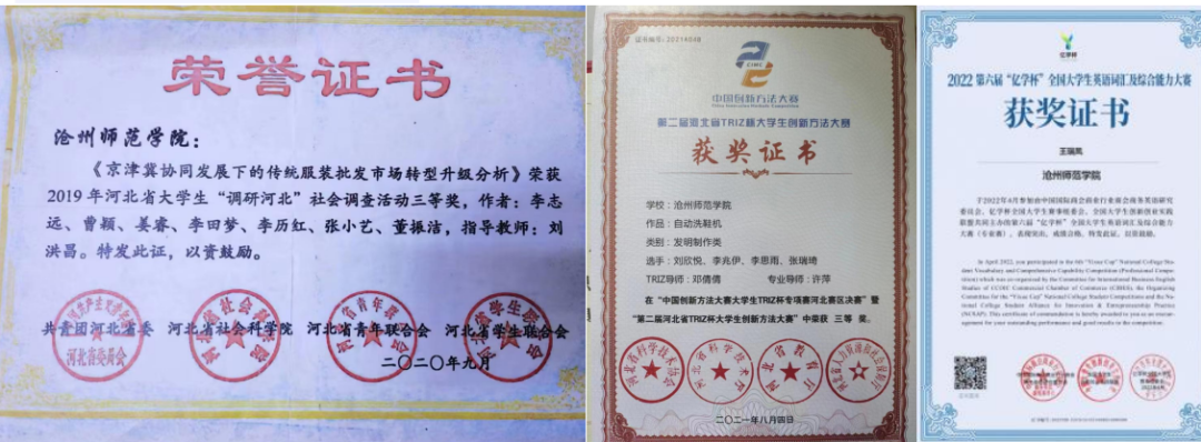 学院特色文化的滋养下,育人成效突显。学生创新创业的实践能力明显提升,G 调拾物、清依茶社、诚信小站等学生创新创业项目孵化,并产生专业品牌效应。其中,G调拾物为大凉山的捐赠,帮助了很多有需要的孩子;诚信小站项目多次被沧州晚报报道,其创造收益资助贫困学生,受到贫困家庭、学校以及社会的赞扬。这类创新创业项目的成功,激发更多学生的创新热情,创新创业项目比赛的参与度和参与效果明显提升,在各类比赛中,商学院学生成绩优异。