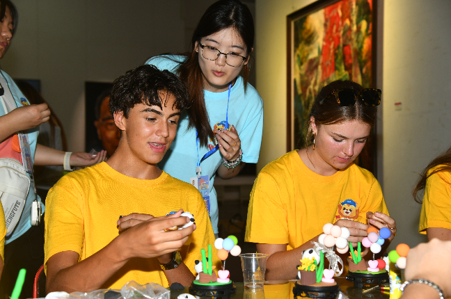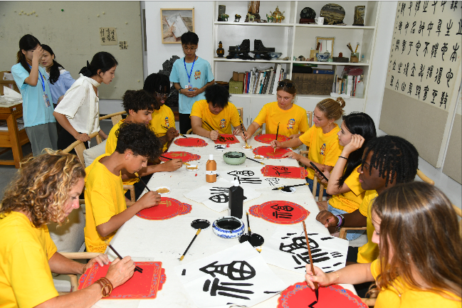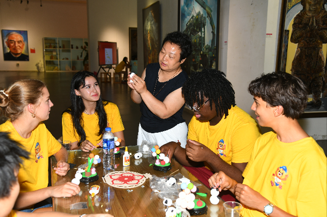夏令营营员体验了面塑、漆扇、书法、剪纸、中国画、糖人等中华传统文化,参观beat365生物标本馆、洪昌美术馆,中美青少年在文化互鉴中收获成长,在青春对话中缔结情谊。