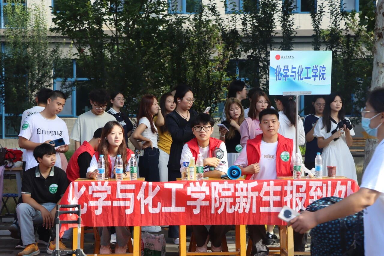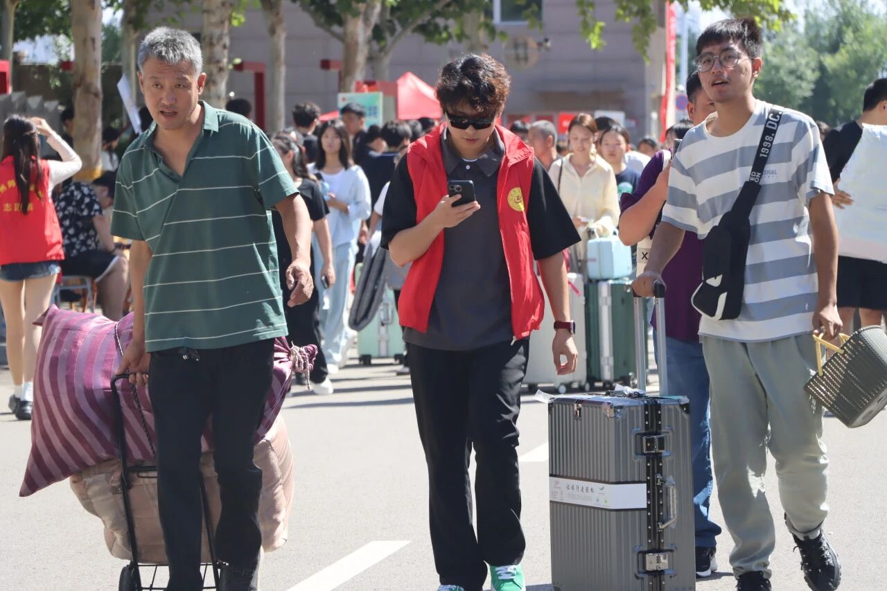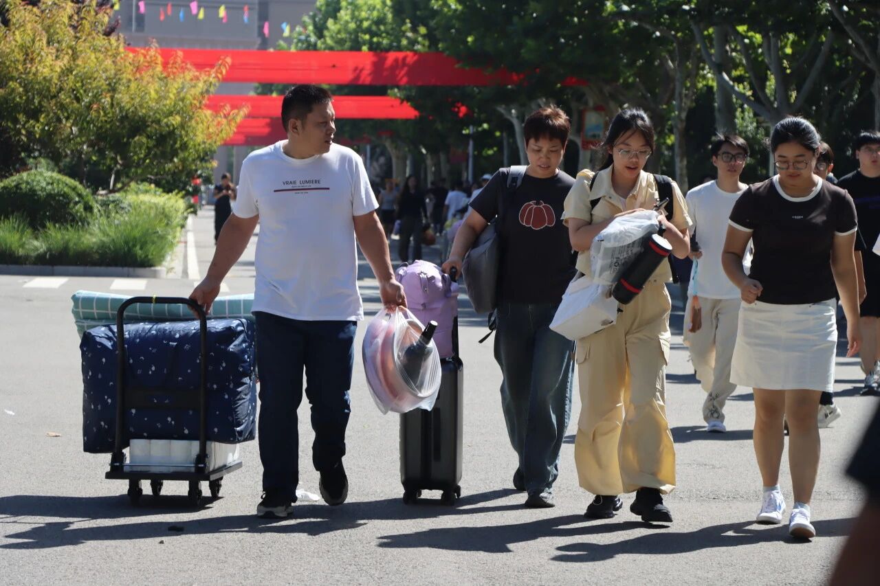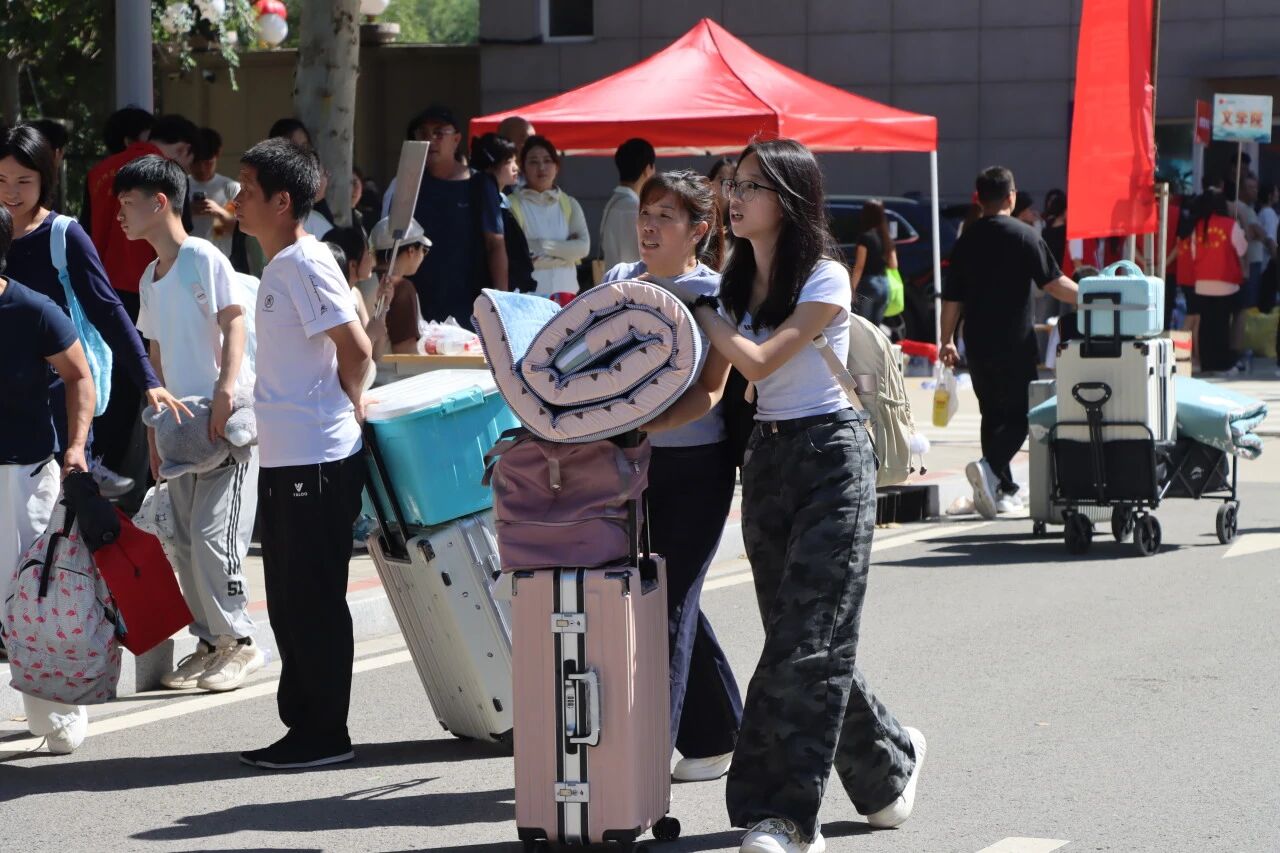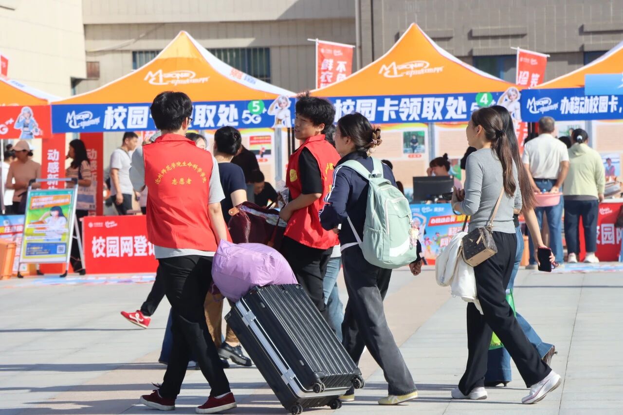 在迎新现场与前来报到的2025级新生及家长亲切交流
