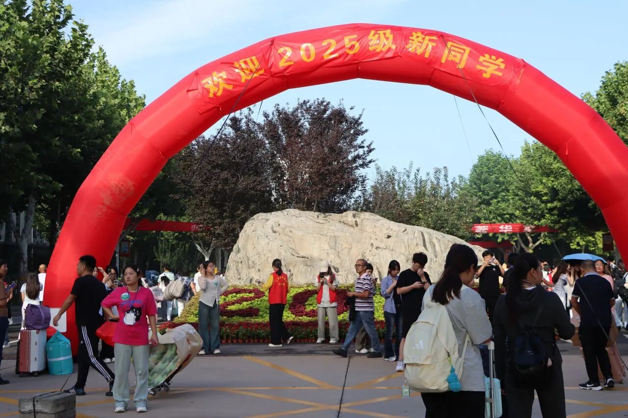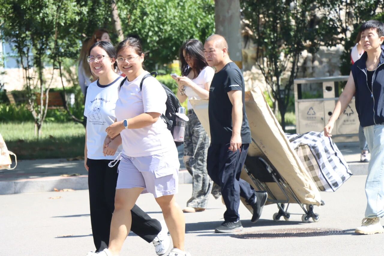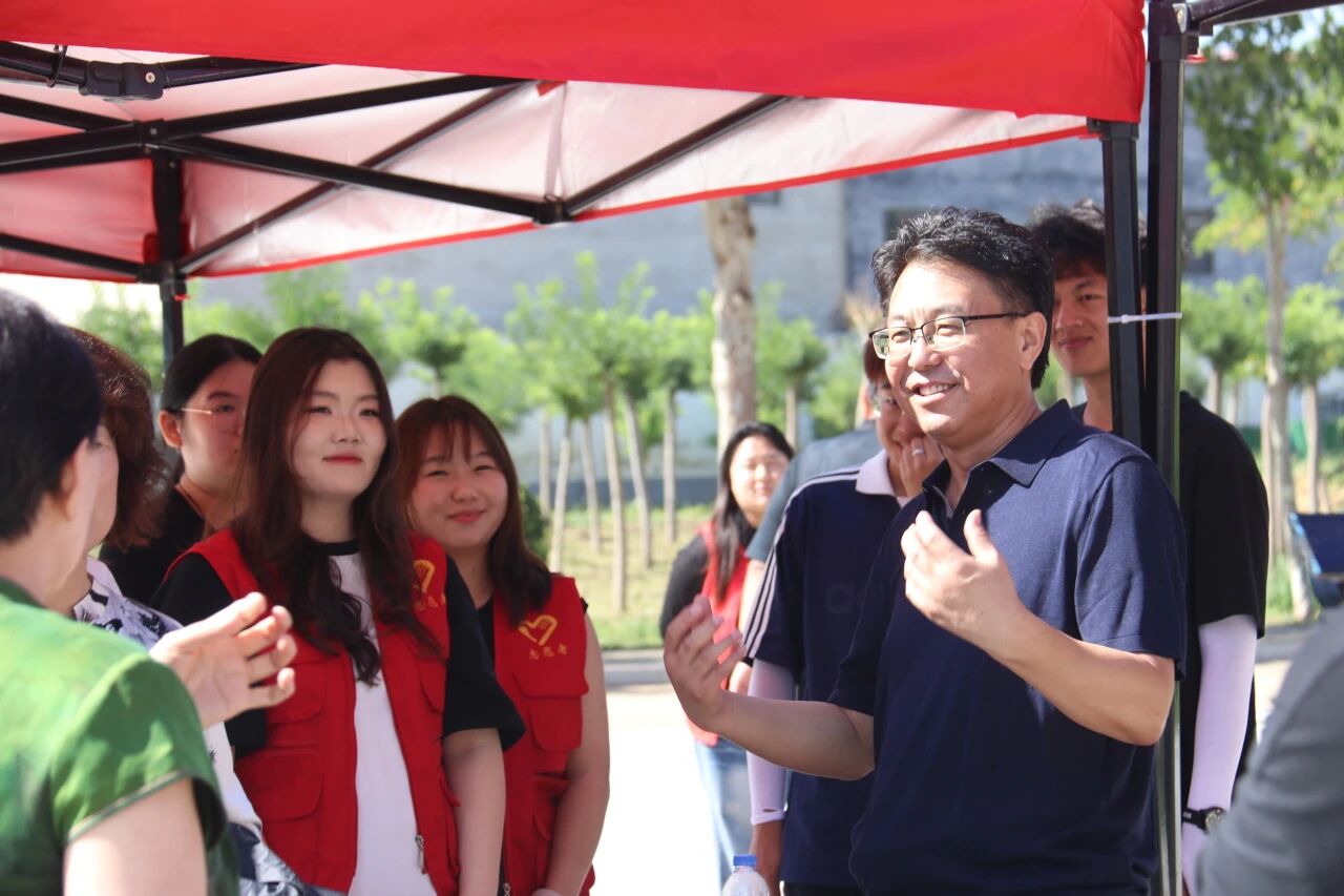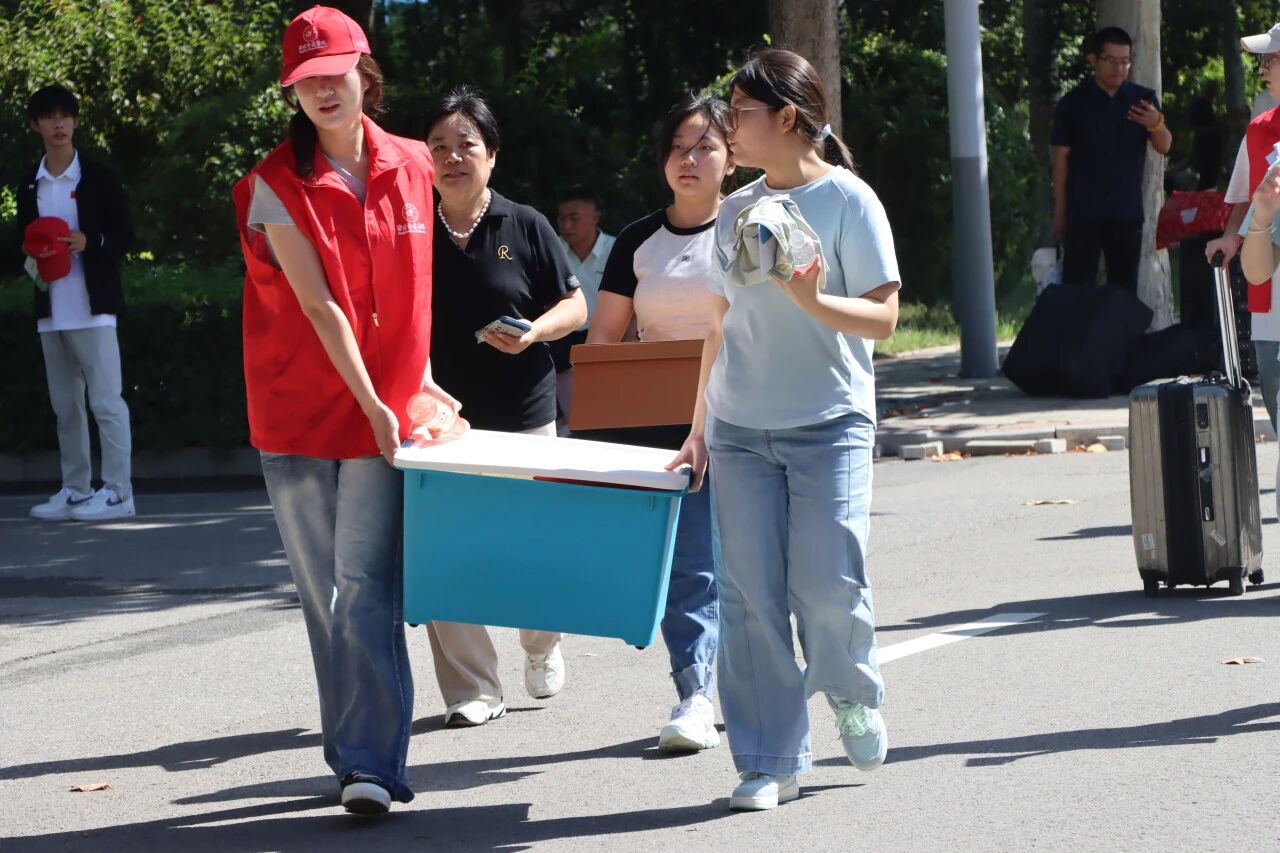 在迎新现场与前来报到的2025级新生及家长亲切交流