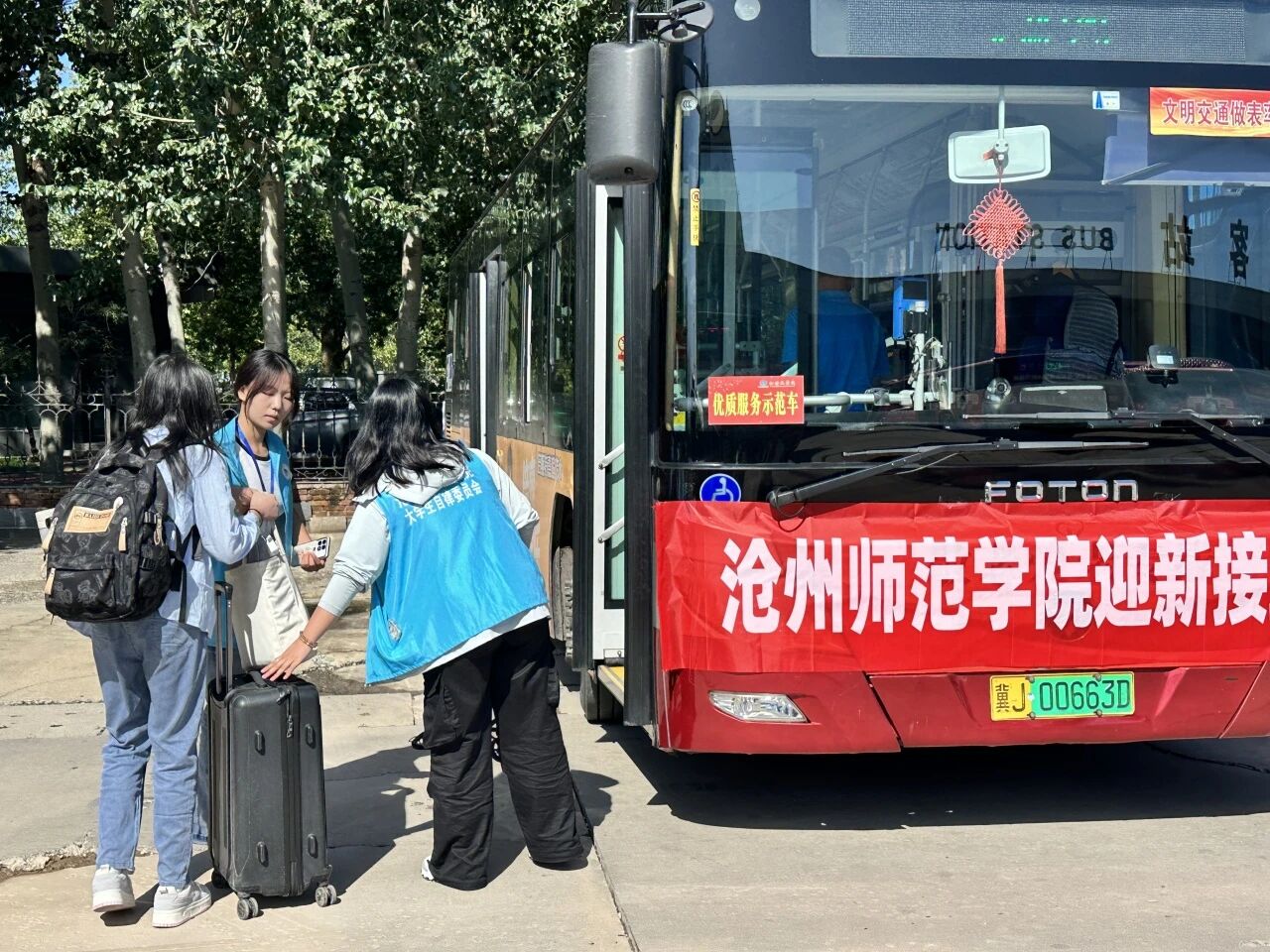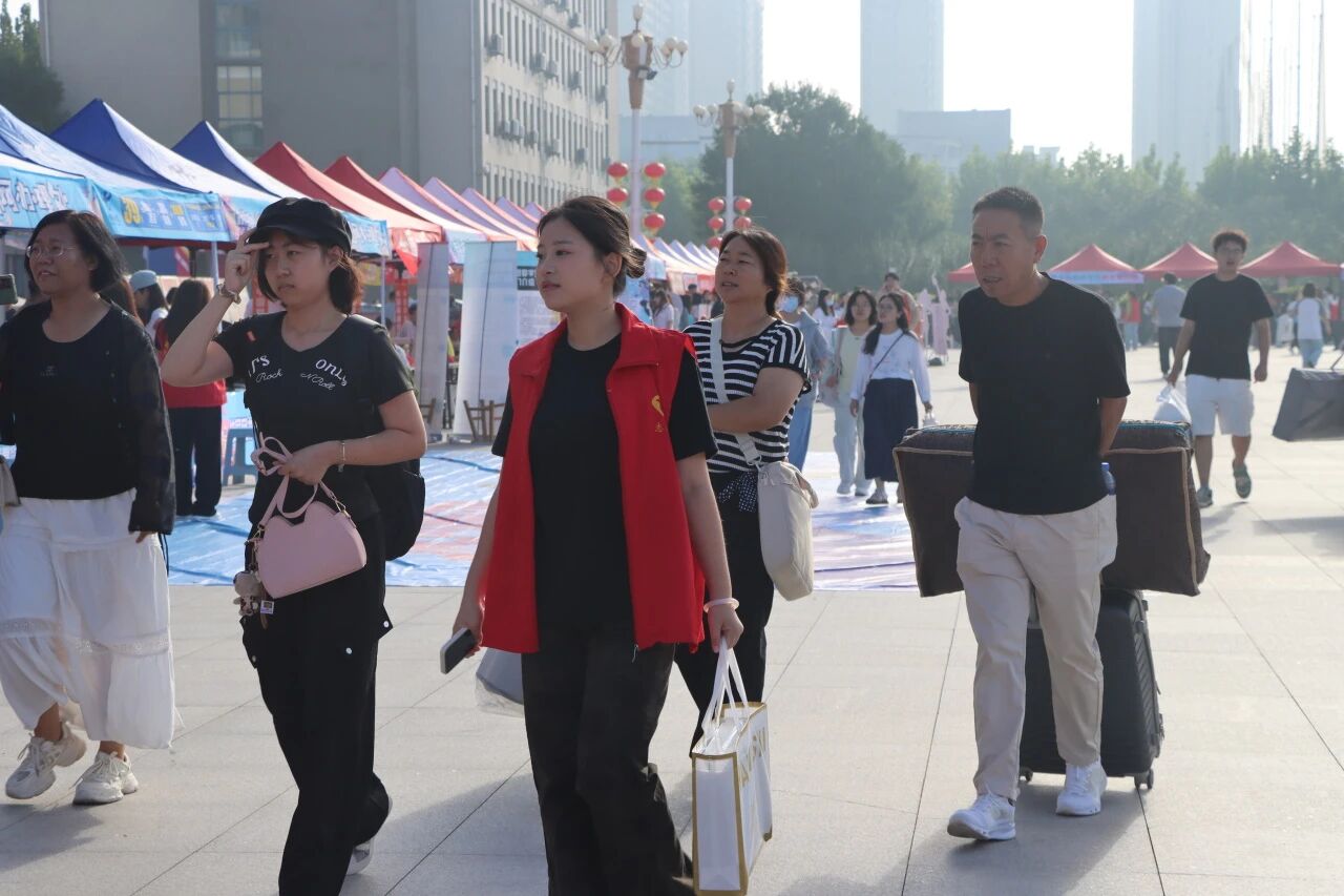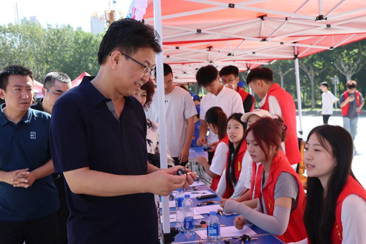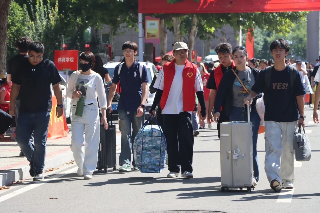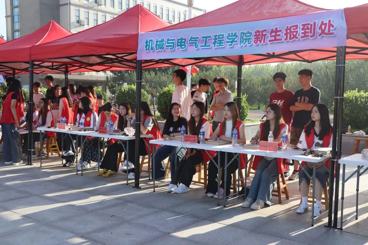 在迎新现场与前来报到的2025级新生及家长亲切交流