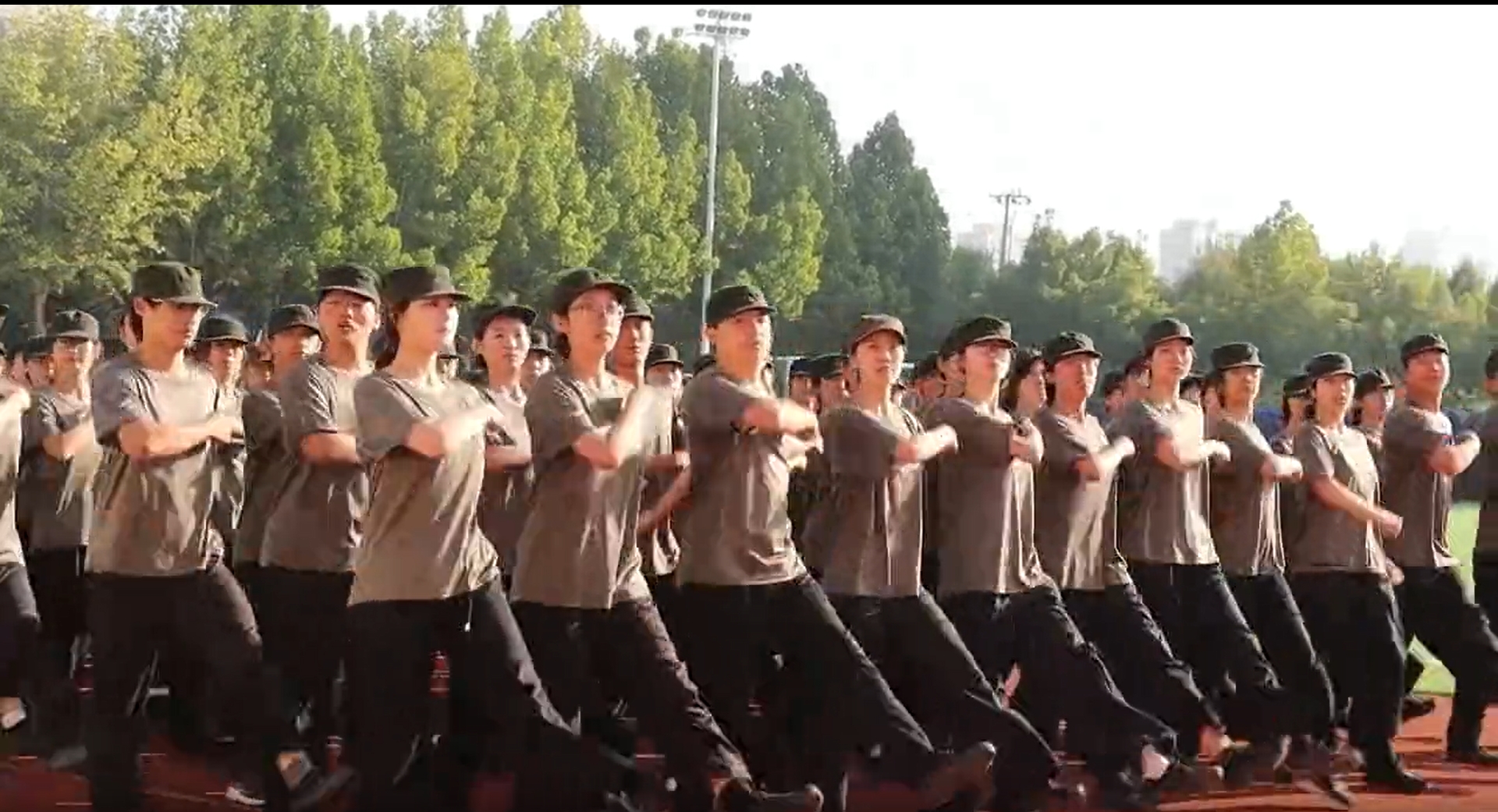 “2025级新生军训团集合完毕, 请检阅!” “开始!” 伴着朝阳 仪式正式开始
