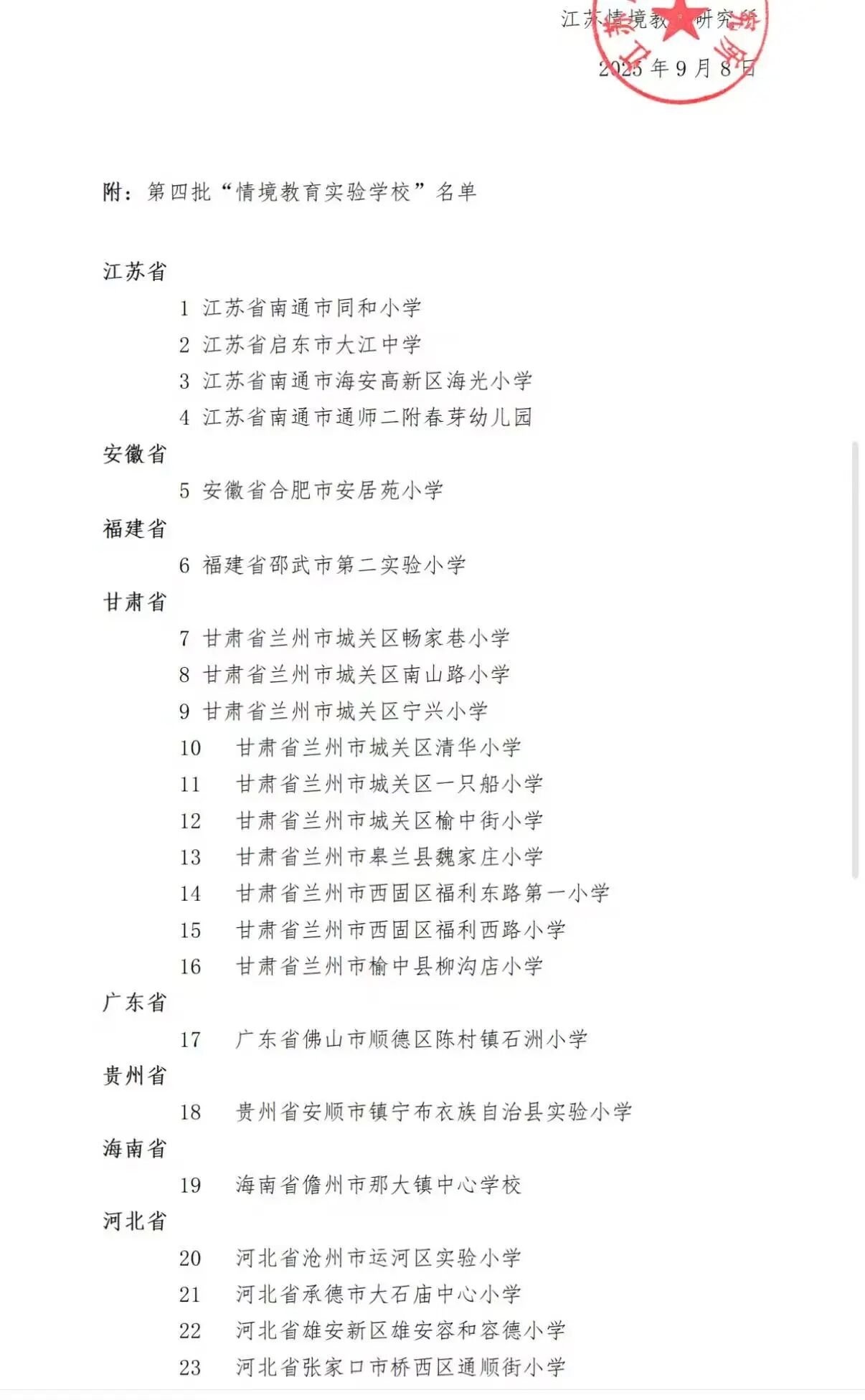 近日,从江苏情境教育研究所获悉,第四批“情境教育实验学校”名单正式公布。在全国34所入选学校中,河北省沧州市运河区实验小学、承德市大石庙中心小学、张家口市桥西区通顺街小学三所学校成功入选,标志着河北省在情境教育实践与推广方面取得重要进展。