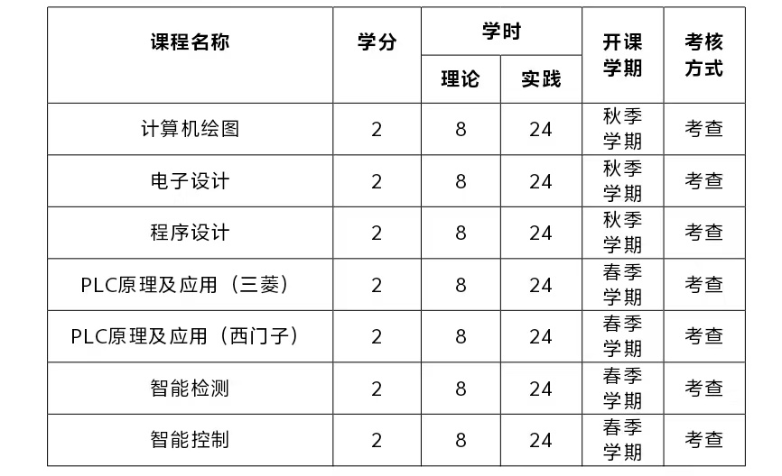 工业智能控制微专业是融合人工智能、控制工程、电气工程、机械工程等多个学科的“新工科”微专业。本专业面向国家智能制造重大战略需求,结合当前人工智能和工业智能化等技术的最新发展以及机器人智能控制领域的应用,协同三菱电机自动化(中国)有限公司等合作企业,聚拢自动化、电气工程及自动化、机械电子工程三个专业优秀师资等教学资源,开设《计算机绘图》《电子设计》《PLC原理及应用》《智能控制》等7门课程,以工业实际应用为背景,倡导做中学、做中练、做中悟,强化学生实践能力和创新意识为特色,项目驱动教学全过程,培养具备智能控制领域专业知识、综合素质和能力的跨学科专门人才。