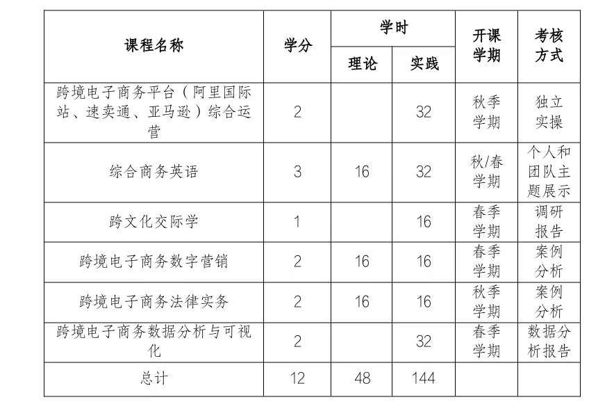 本微专业旨在培养具备国际化视野、专业技能和创新能力的跨境电子商务人才,以满足全球电子商务市场快速发展的需求。学生将具备扎实的跨境电子商务基础理论、业务技能及国际市场调查研究能力,能够熟练运用所学知识解决实际问题,在对外经贸合作领域从事实际业务及管理工作,成为应用性、复合型的跨境电商人才。通过学习操作与实践,既符合跨境电商对人才的需要,同时使学生能够在跨境电商企业中熟练地使用跨境电商平台、交易软件及海外社交媒体,达到从事跨境电商运营及相关工作的基本标准。