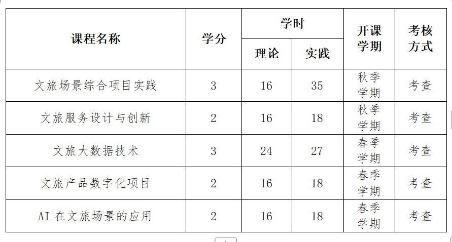 课程简介:是一门以真实产业问题为核心的跨学科实战课程。学生将通过校企合作项目,深入参与智慧景区规划、沉浸式体验设计、文旅大数据分析与数字内容开发等前沿领域。课程注重培养学生整合技术应用与运营管理的能力,使其在解决实际问题的过程中,掌握项目全流程设计与实施技能,为未来从事数字文旅产品经理、智慧景区运营等高端岗位奠定坚实基础。