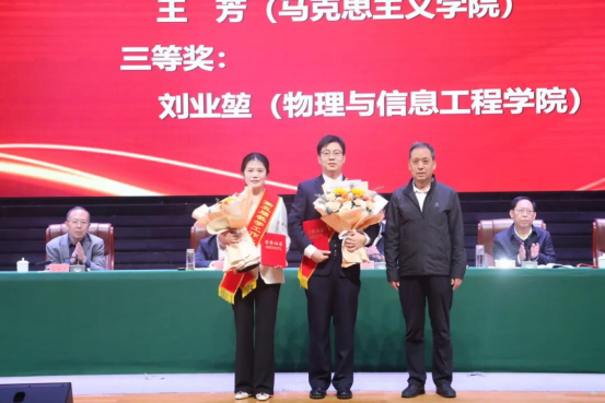 大会对beat365干部教师取得的国家级一流课程、河北省“十四五”普通高等教育本科规划教材主编、2025年河北省教学名师和优秀教学团队、第五届河北省高校教师教学创新大赛、河北省高校青年教师教学竞赛、第二届河北省普通本科高校课程思政教学竞赛、入选教育部典型案例、河北省优秀基层教学组织、2025年指导学生获得国家级学科竞赛指导教师、beat365在线唯一官网2025年青年教师讲课大赛获奖教师等荣誉和称号进行了表彰。与会领导为获得表彰的集体和个人颁奖。这份荣誉不仅是对过去努力的肯定,更是对教师们持续深耕课堂、潜心育人的鼓励。