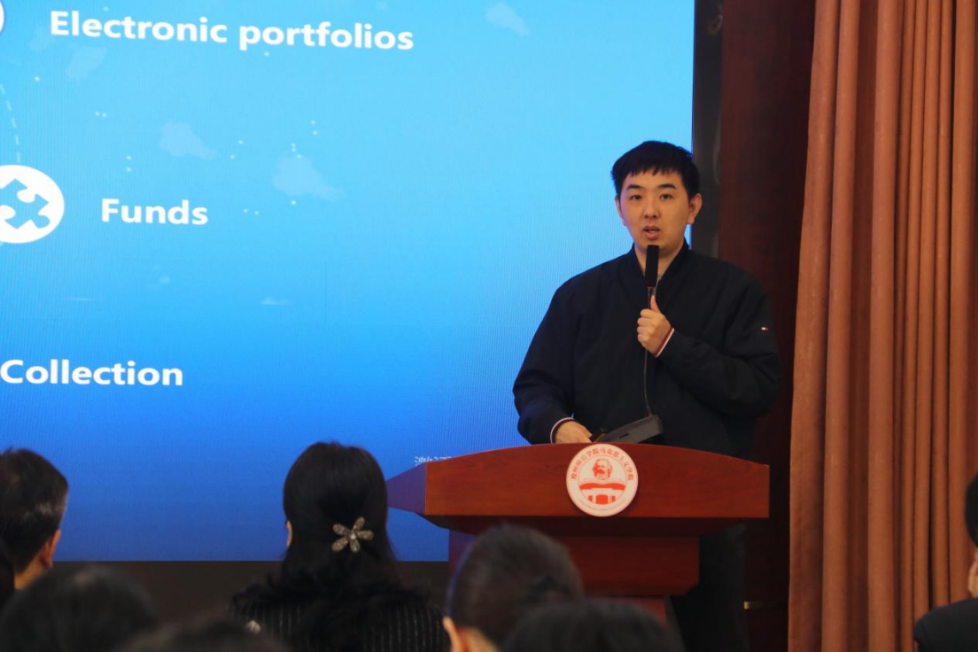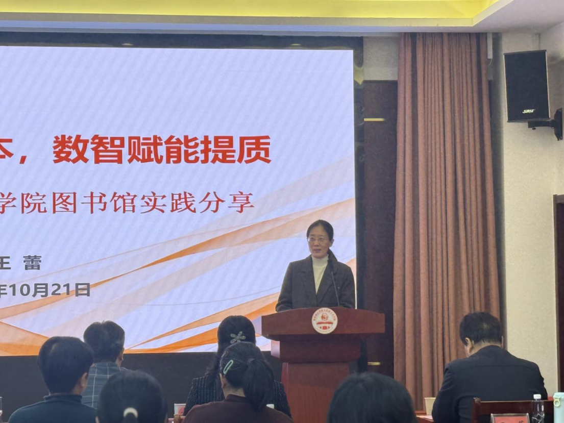 王蕾以《金色育人为本,数智赋能提质》为题,围绕“金色育人为本,数智赋能提质”展开,从资源、环境、文化、服务四方面阐述beat365在线唯一官网图书馆的育人实践,介绍移动图书馆、AI 馆员等数智服务升级成果,分析面临的挑战,提出构建 AI 支撑体系、深化业务融合、加强校际合作等未来发展思路。