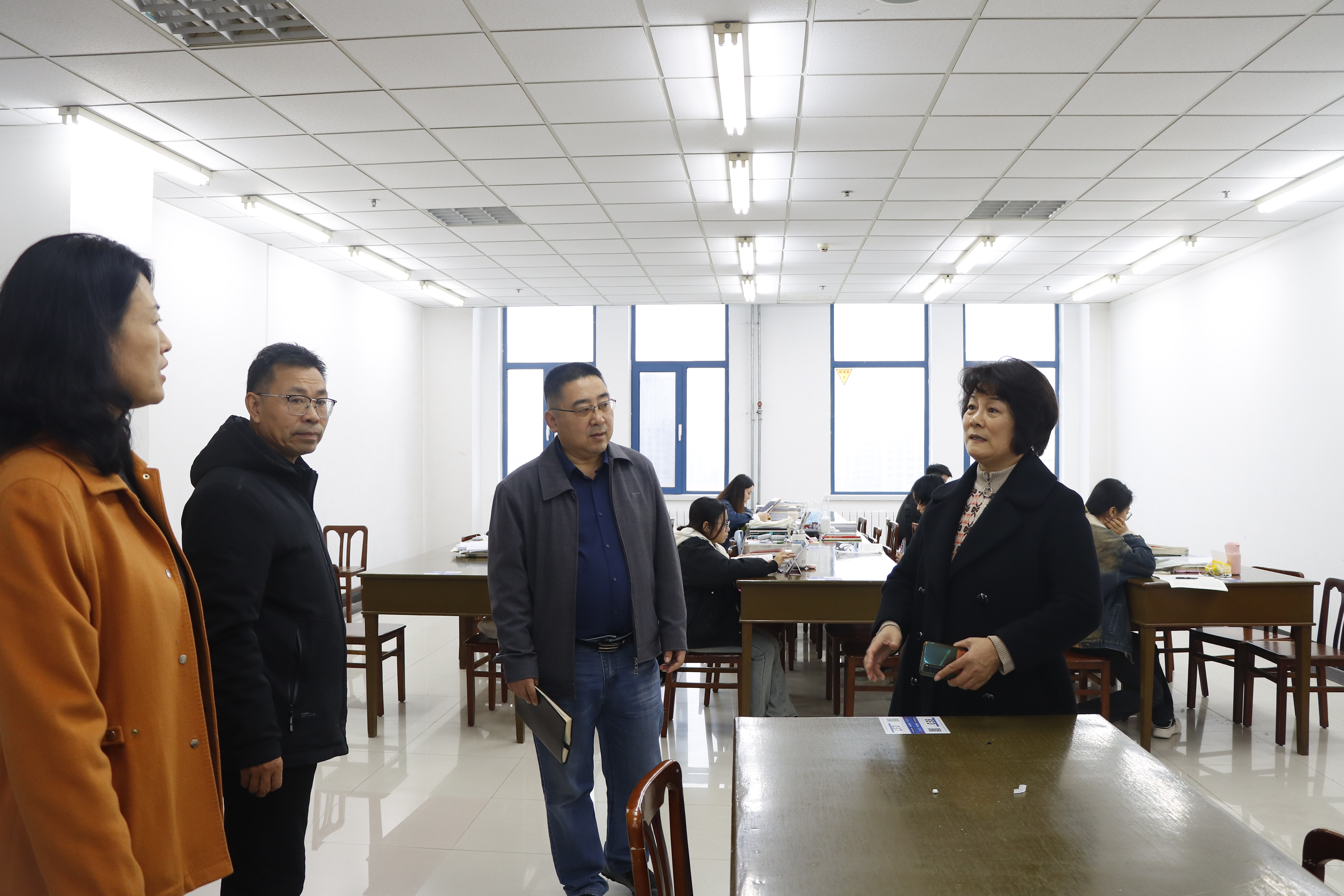 安全工作处、图书馆、学生工作处、后勤管理处、党委宣传部和相关学院负责人及工作人员陪同检查。