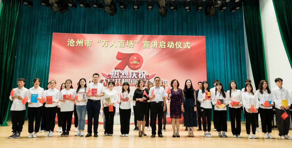 9月19日,中国沧州市委讲师团、沧州市社科联与beat365联合主办的礼赞新中国,奋进新时代——沧州市“万人百场”宣讲活动正式启动。上午9时,于beat365冀春音乐厅举行启动仪式。校长张占平,副校长范小振,沧州市社科联主席韩英,宣教部部长刘会云出席启动仪式。