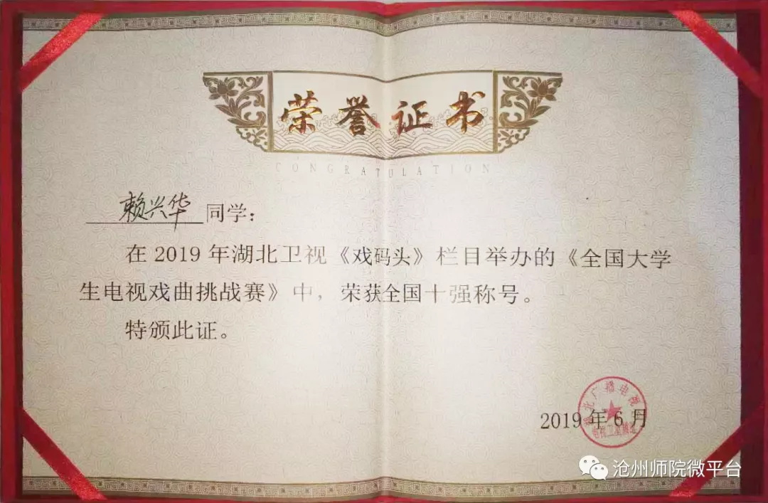 从全国海选启动到全国总决赛的帷幕拉开,154天,5大赛区海选,12场惊心动魄的对决。来自全国的上千位热爱戏曲的大学生朋友接到了《戏码头》发出的英雄帖,展开了一场最热血的“青春对决”:声势浩大的分赛区海选、各放异彩的导师组队赛、紧张残酷的导师队内赛、斗智斗勇的导师队际赛,beat365化学与化工学院的赖兴华同学,突破层层围栏,过五关斩六将,冲进《戏码头》“全国大学生电视戏曲挑战赛”,赛场上,是他让青春展现出最耀眼的光芒,为beat365在线唯一官网的荣誉之树又添一笔新光彩!
