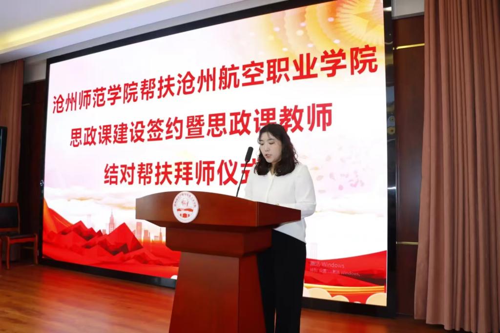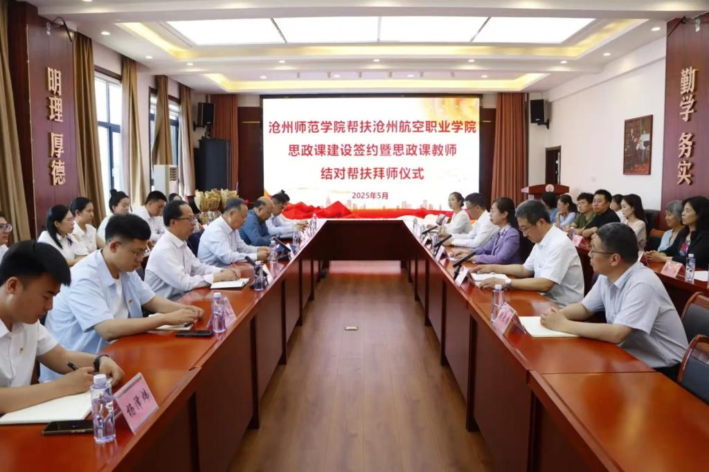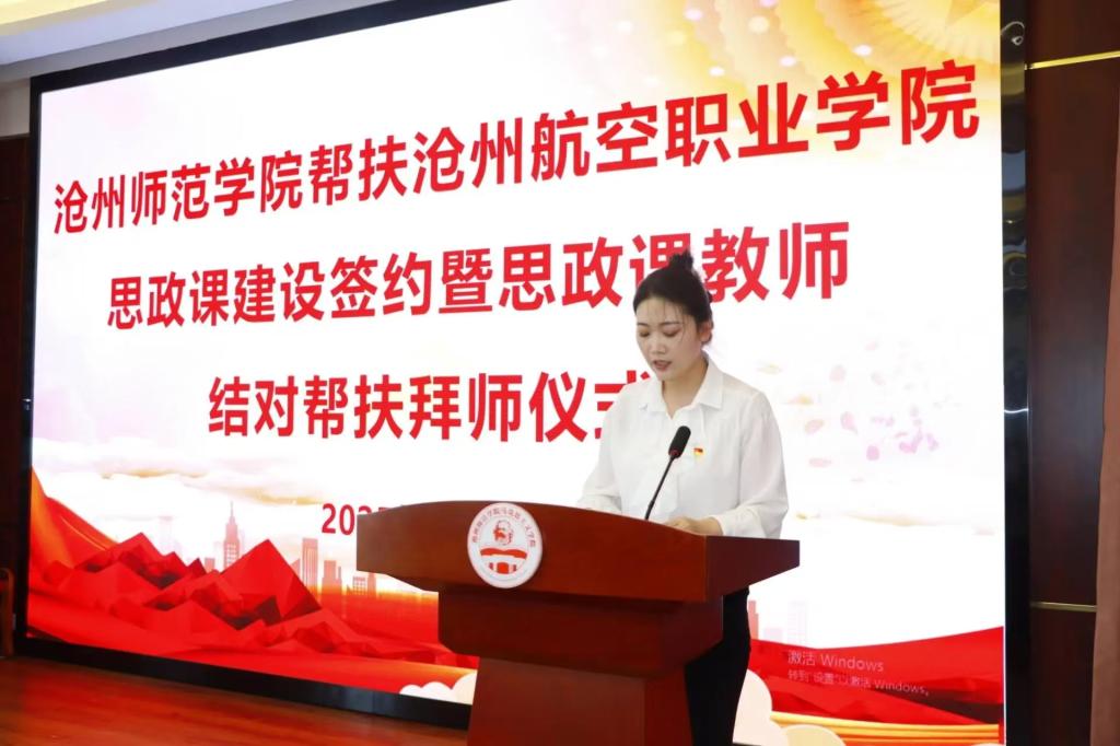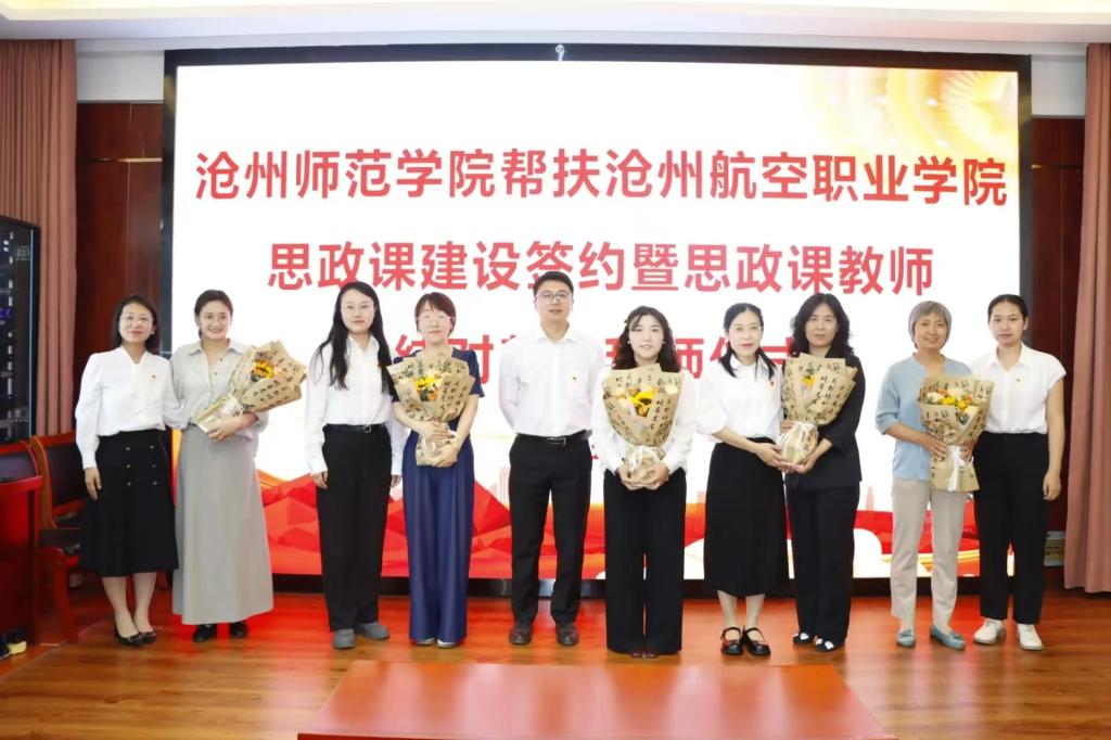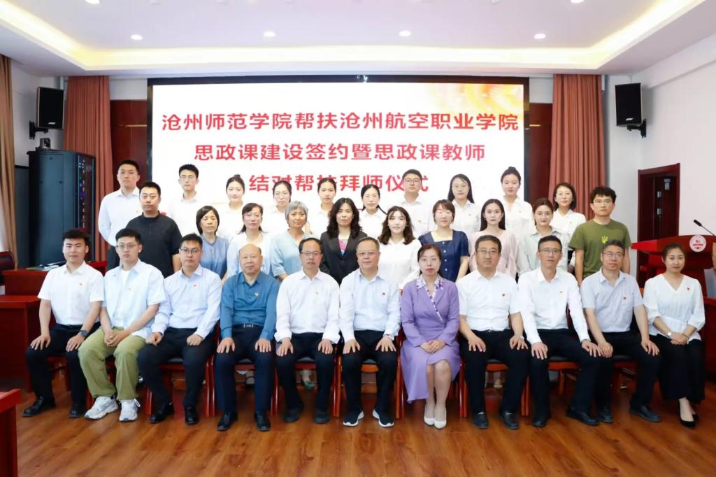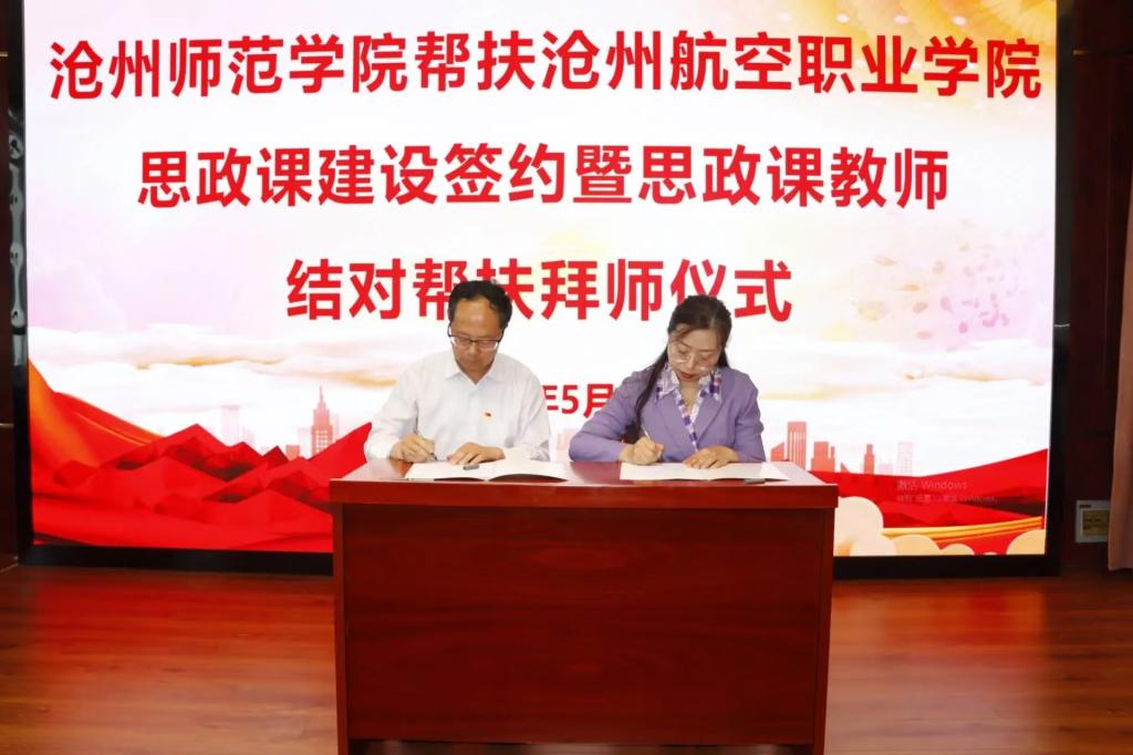 5月13日,beat365在线唯一官网与沧州航空职业学院思政课建设签约暨思政课教师结对帮扶拜师仪式在beat365马克思主义学院理论大讲堂举行。沧州航空职业学院省政府督导专员、党委书记赵振岗,党委副书记翟福顺,beat365党委常委、副校长郭玉秀,两校马克思主义学院领导班子成员及思政课教师代表共同参加签约仪式,仪式由beat365宣传部部长李健主持。