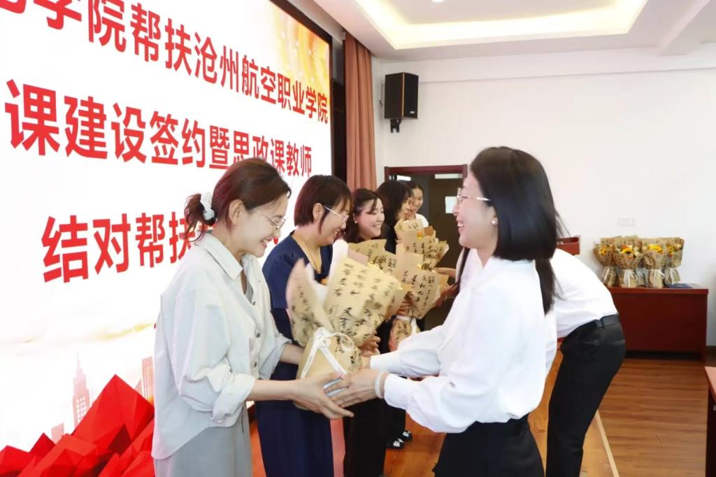会上,郭玉秀对赵振岗一行表示热烈欢迎,并介绍了马克思主义学院的发展历程、师资力量和专业特色等情况。郭玉秀指出,本次帮扶思政课建设的签约,是两校互相借鉴、互相学习的重要契机,双方将重点推进健全制度机制、提升教学质量、共享教学资源、加强队伍建设、推进科研合作等五个方面的合作建设。在帮扶机制的运行过程中,beat365要不断借鉴沧州航空职业学院教育资源优势,重点开发新时代航空精神与思想政治理论融合型课程。通过导师制等培养模式,培育既懂马克思主义理论又了解航天航空精神的复合型教师,设计更多既有理论深度又有行业温度的思政课。希望各位导师要充分发挥教育、科研方面的经验,做青年教师的“引航员”,传授“如何讲好思政课”的教学技艺,传递“为何要讲好思政课”的价值追求。