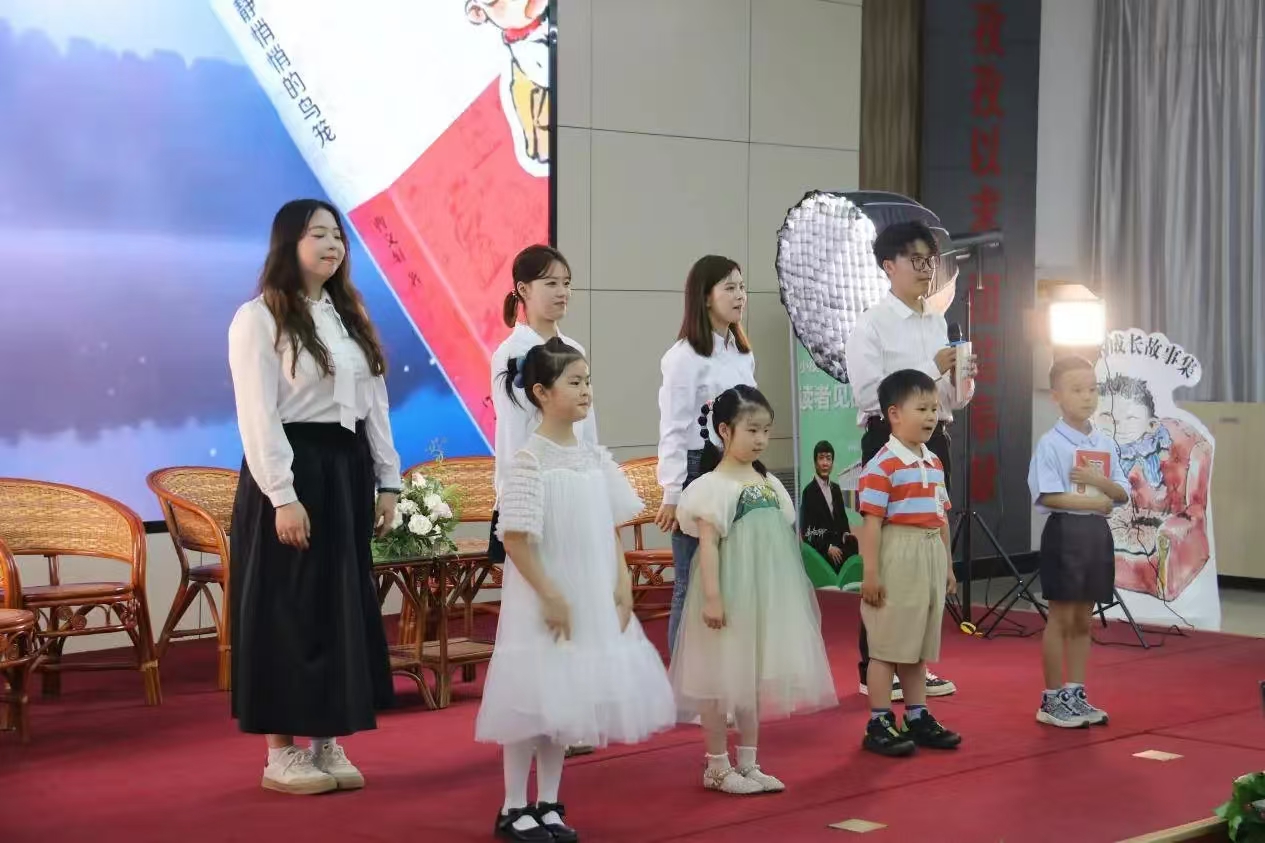 活动现场,齐越传媒学院播音与主持艺术专业学生诵读了曹文轩先生作品中的经典片段。小读者代表给曹文轩献花。