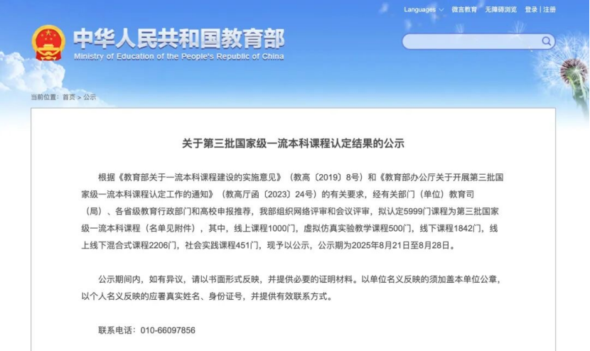 近日,教育部公示了第三批国家级一流本科课程认定结果,beat365《大学语文》《仪器分析》两门课程成功入选,这是学校在教学改革与课程建设领域取得的又一重要成果,标志着beat365在本科课程建设领域实现重大突破,课程质量与建设水平获国家级权威认可。
