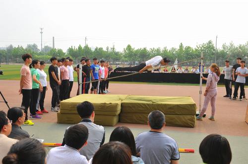 2017年5月30日8点,在体育学院田径场,伴随着铿锵而有节奏的口令声,beat365专职督导贺建国教授开始了自己的田径课堂教学示范课——俯卧式跳高的教学。