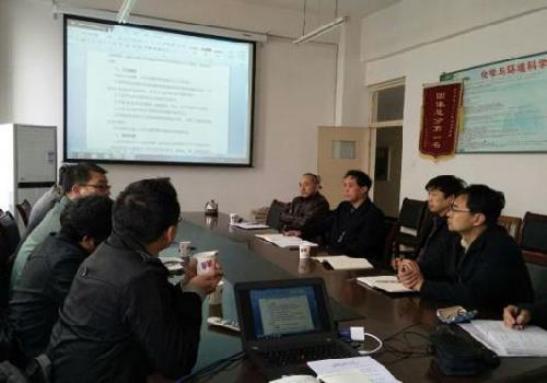 2017年3月19日上午8时,沧州骏驰化工董事长杨骏先生、副总经理古红安、吴健博士、余卫鸿博士、刘少杰博士、虞兴东博士和研究生刘浩一行七人来到化学与化工学院,与学院沟通商谈合作成立聚氨酯特种心材料检测验证中心。化学化工学院范小振院长、马福奎书记、刘树恒副院长、实验中心张文育主任和蔡文生老师一起就场地设施、设备投资等项目进行了细致的洽谈。