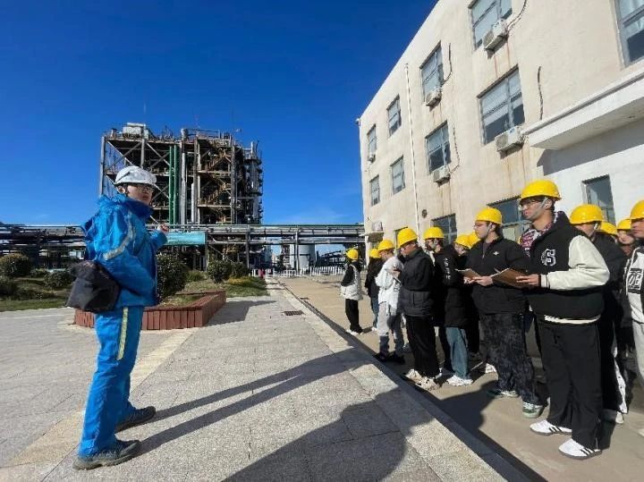 聚海分公司是一家生产TDI(甲苯二异氰酸酯)和聚碳酸酯的大型国有化工企业。企业负责人带领同学们现场参观了硝化、加氢、光气化等TDI的主要生产区和中控室,详细介绍了企业在安全生产方面的创新举措,让同学们体会到了化工企业创新驱动发展、科技引领生产的理念。