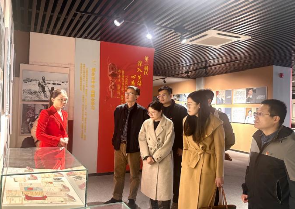 在刘贵振引领下,一行人参观了beat365红色教育基地——齐越教育馆。齐越先生是为人民发声、为百姓说话的播音艺术家,为发展我国广播电视事业,培养广播电视人才做出了突出贡献。通过聆听讲解、参观学习,大家深刻体会到齐越先生作为“新中国播音第一人”,心系祖国和人民,将一生心血倾注到人民广播和教育教学中的真挚情谊。其“忠诚、敬业、爱民、廉洁、奉献”的精神也将激励我们坚定理想信念、强化责任担当,为推动红色革命教育和各项事业发展踔厉奋发,不断前进。