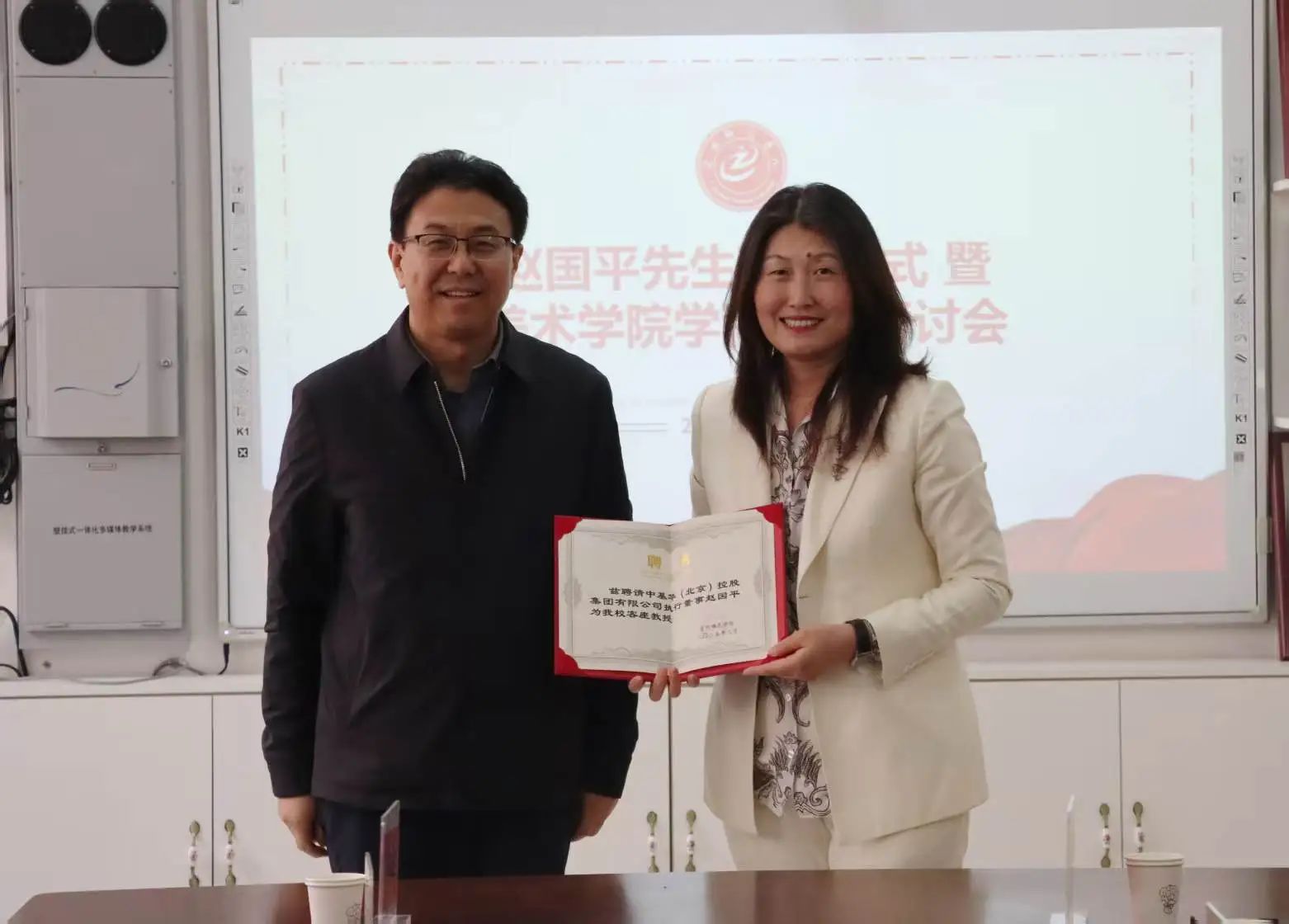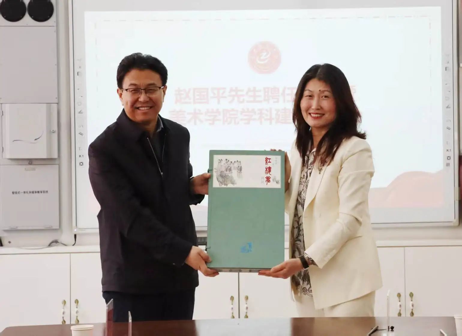 3月27日上午,赵国平先生聘任仪式暨美术学院学科建设研讨会在beat365美术学院会议室举行。中基华控股集团有限公司执行董事赵国平,千页艺术创始人、龙鳞装非物质文化遗产传承人张晓栋,英国Noblypos金融科技公司、联合创始人乎思愣,中基华工程管理学院主任孙兆霞来到beat365,同beat365党委书记云电军、党委副书记邢树军、副校长高颖以及美术学院的师生代表走进了一场“历史与未来交织”的文化之旅,触摸艺术跳动的脉搏