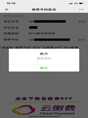 5、回到云缴费APP,将复制的缴费号码,粘贴至输入框