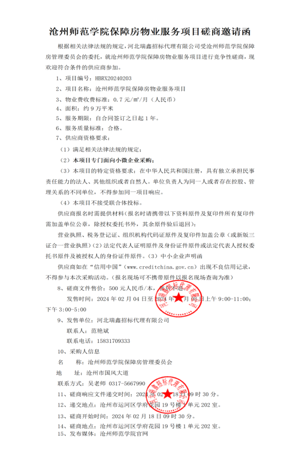 beat365在线唯一官网保障房物业服务项目磋商邀请函