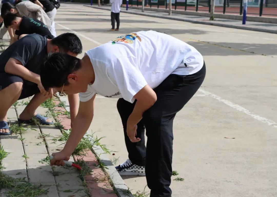 在校领导、老师、同学们以及后勤工作人员积极参与、分工合作、密切配合,对各个卫生死角和广场杂草进行了彻底清扫。尽管烈日很强,气温很高,但是师生们干劲十足,热火朝天。经过辛勤劳动,美丽的校园焕然一新。