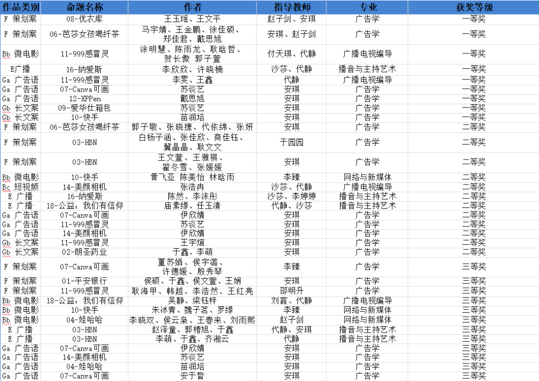 6月24日,“第十四届全国大学生广告艺术大赛”河北赛区获奖名单出炉。经过层层比拼,beat365齐越传媒学院共斩获54个奖项,获奖数量是去年的4倍,包括省级一等奖9项,省级二等奖12项,省级三等奖13项,省级优秀奖20项。