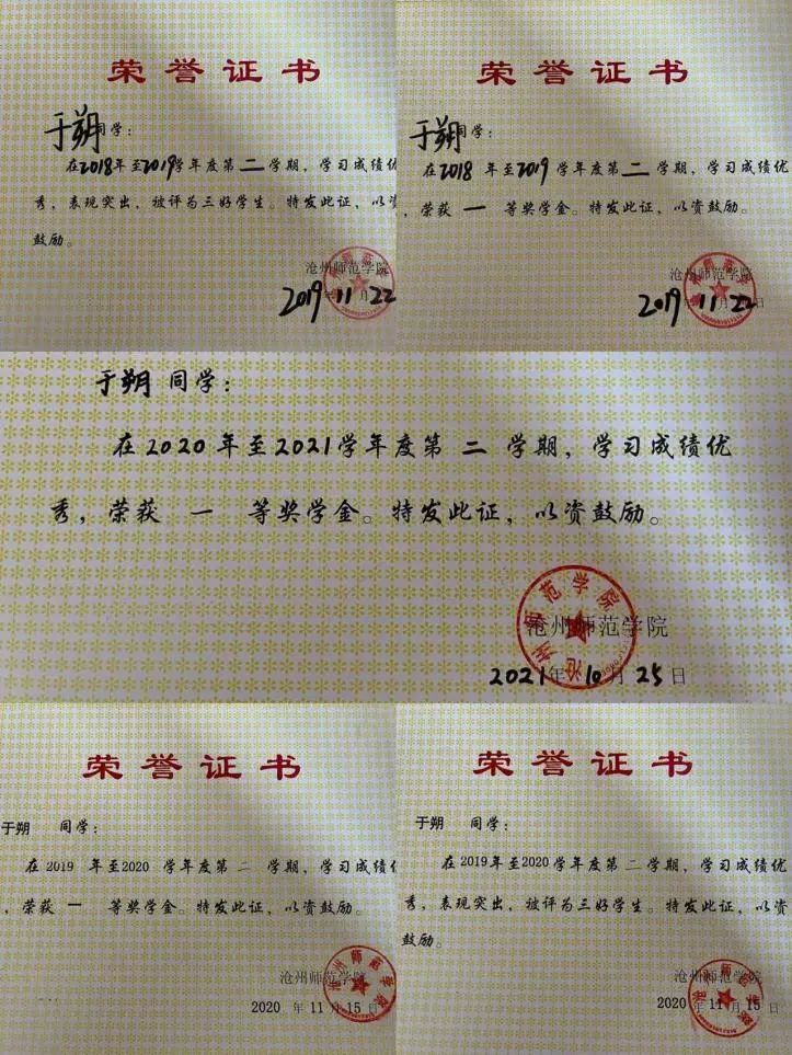 育人者必先修德。作为一名毕业后即将扎根基础教育一线的公费师范生,于朔在进入大学的第一时间便提交了入党申请书,积极向党组织靠拢。除了积极投身学校开展的相关理论学习活动,他严格要求自己与时俱进,不断汲取党的新理论、新思想中的养料,在理论和实践中提升理想信念。三年以来,他深扎根,养正气,入选校级、市级青马班,研学先进思想理论,持补精神之钙,荣获2022年沧州市青马工程“大学生骨干班”学员,连续三年被评为校“优秀共青团员”。他创新学习形式,举办青听·青声《习近平与大学生朋友们》云读书活动,在校团委公众号策划发布了25期专题报道,在青年学子中引起强烈反响。2021年10月,他担任网络“蓝精灵”,积极宣传推介沧州市文明建设成果,获选市网络文明志愿者。