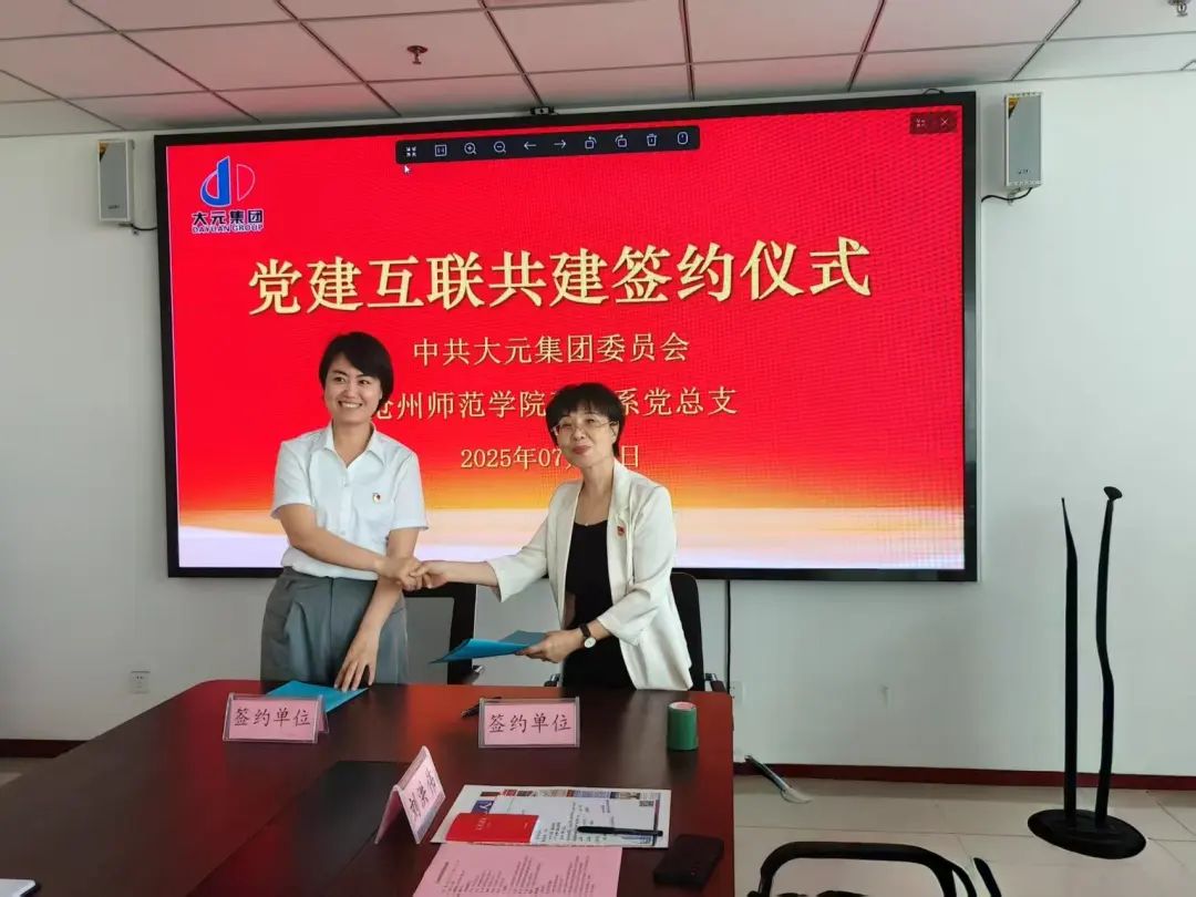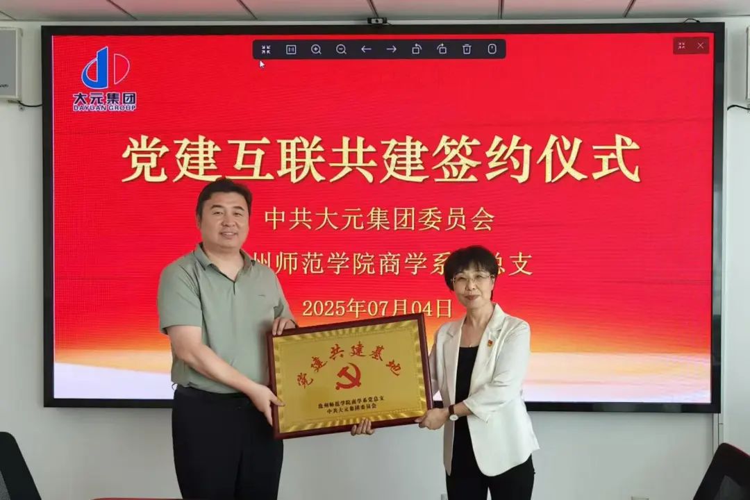 双方举行了党建互联共建签约授牌仪式。刘秀宏与大元集团代表赵娜共同签署合作协议,于宙为商学院党总支授“党建共建基地”牌匾,标志着双方合作正式启动。
