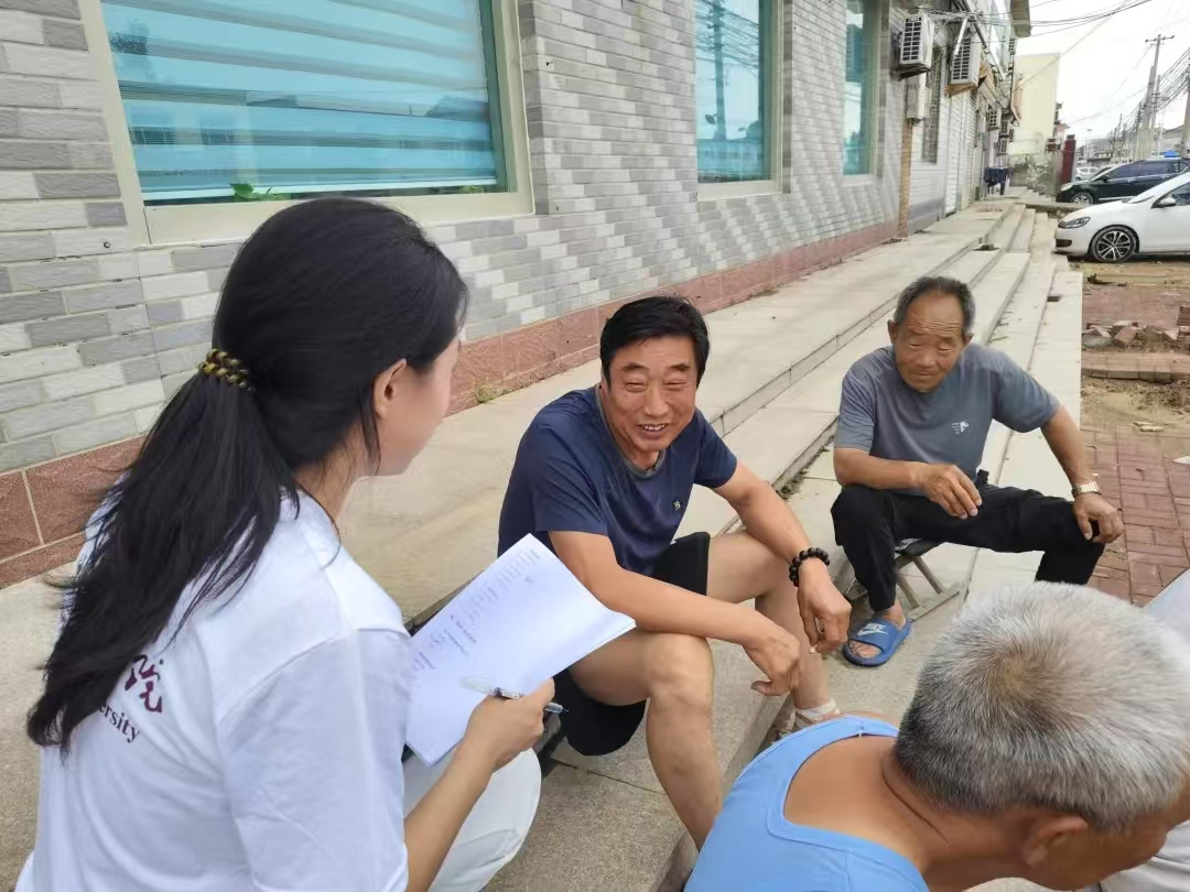 实践的第四站,团队来到了河间市米各庄张兴屯村。村口的老槐树下,几位老人正摇着蒲扇乘凉,看到这群朝气蓬勃的大学生,脸上露出了好奇的笑容。团队成员们顾不上休息,立即投入到准备工作。米增庭同学调试着摄像设备,白恩姿、郑雨晨则忙着布置场地。