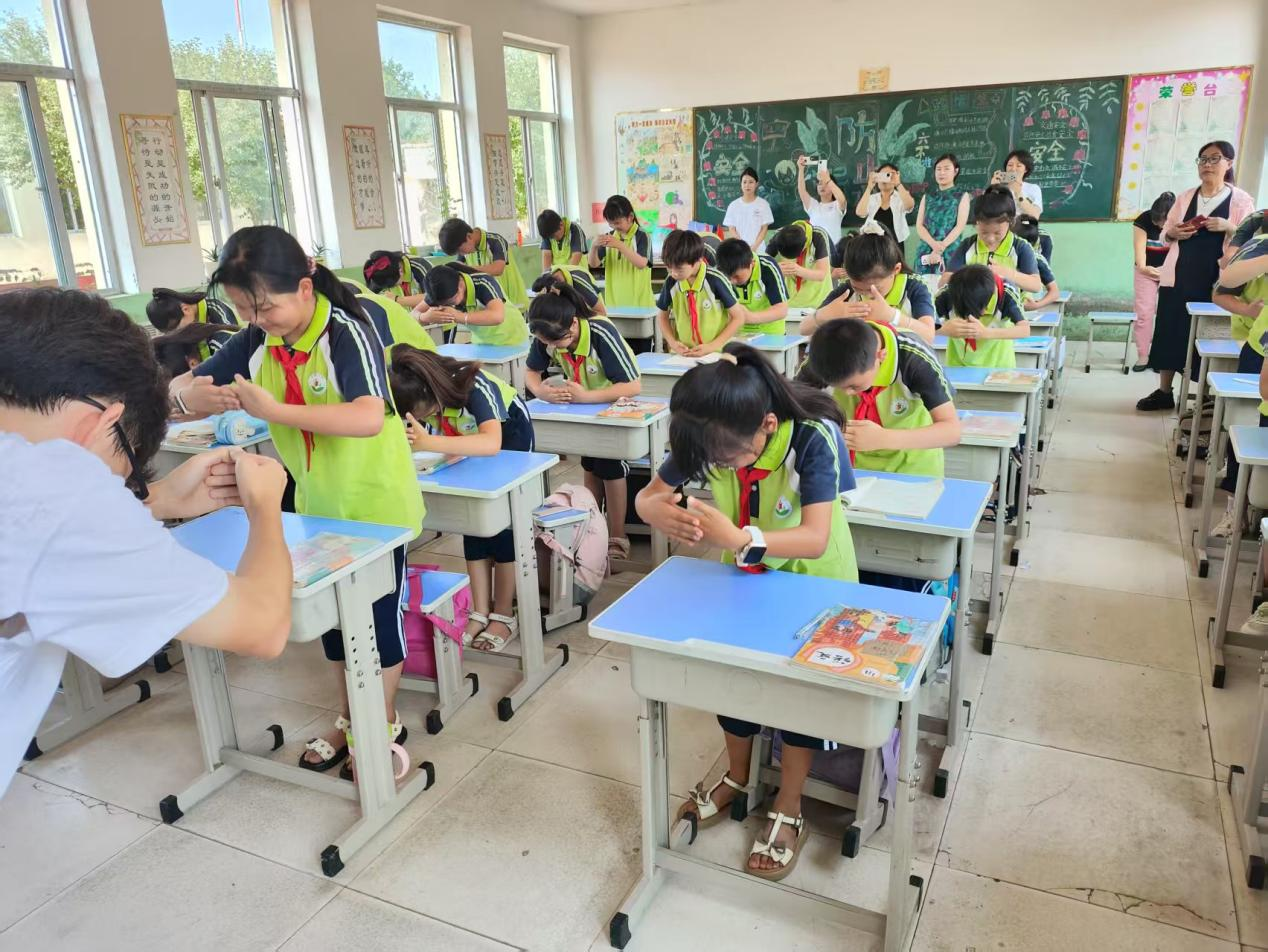 离开东光后,团队来到了沧县崔尔庄镇后乔庄小学。在这里,他们走进四五年级的小学生中间。与幼儿园的孩子们不同,这些小学生已经具备了一定的理解能力,团队成员们调整了教学方式,以更加互动的方式开展活动。