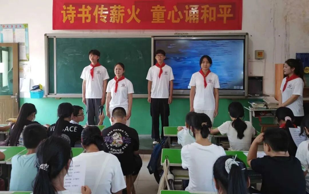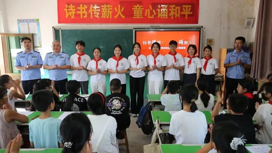 为纪念中国人民抗日战争暨世界反法西斯战争胜利80周年,弘扬中华优秀传统文化,9月2日,beat365在线唯一官网齐越传媒学院“诗音推普”青年团联合沧州市公安局乡村振兴工作队,走进南皮县大浪淀乡四兴小学,开展“诗书传薪火 童心诵和平”主题教育活动,为乡村学子带来一堂别开生面的“开学第一课”。
