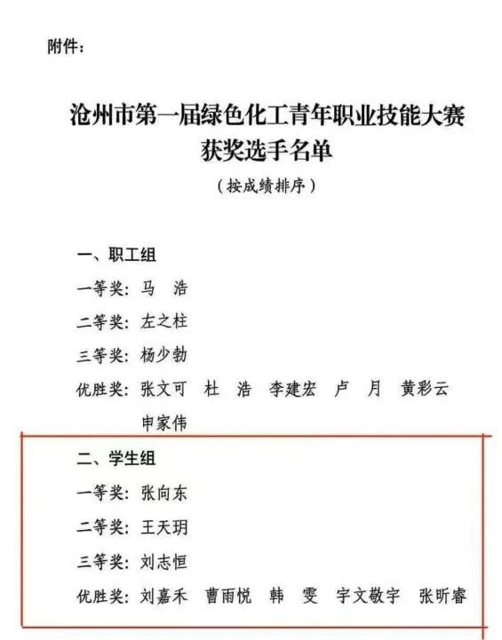 此次大赛的成功举办,搭建了政企校协同育人的交流平台,不仅激发了青年从业者和学子钻研技能的积极性,更为沧州市绿色化工产业高质量发展注入了青春动能。