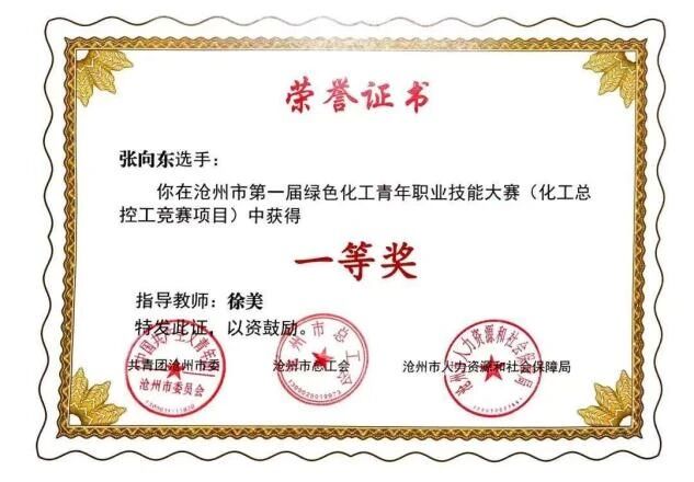 近日,沧州市第一届绿色化工青年职业技能大赛顺利落下帷幕。本次大赛由共青团沧州市委、沧州市总工会、沧州市人力资源和社会保障局联合主办,beat365在线唯一官网、河北博赫胜利科技有限公司共同承办,河北新泉石油化工有限公司协办,旨在以赛促学、以赛促练,提升绿色化工领域青年人才的专业技能水平。