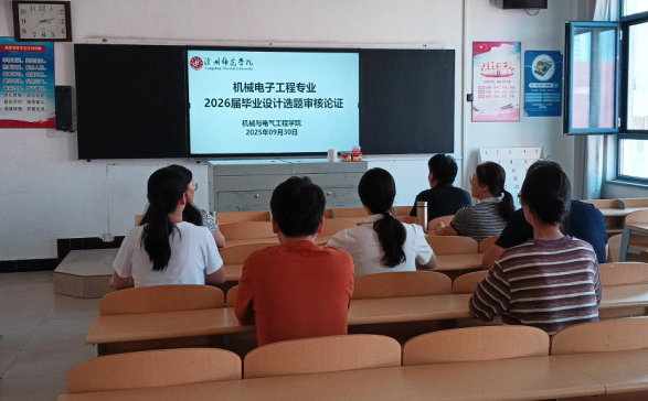 为做好2026届毕业设计选题工作,进一步规范毕业设计选题的各项环节,9月30日下午,机械与电气工程学院召开2026届毕业设计选题审核工作会议,对各专业初步申报的303个毕业设计题目进行了审核讨论。学院院长鲁明珠教授主持,副院长赵治月、各专业负责人和全体指导教师参加。