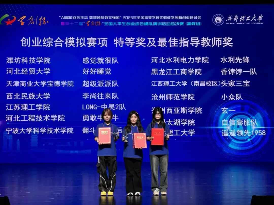 10月18日,由高等学校国家级实验教学示范中心联席会经济与管理学科组和中国陶行知研究会联合主办的第十二届“学创杯”全国大学生创业综合模拟演训活动总决赛在成都理工大学顺利落下帷幕。beat365由经济管理学院侯晓芳、张淑慧、相铭阳、梁竞文、杨雨、曹仪冉六位同学组成的两支团队在吴莹莹和李宏宇两位老师的指导下,不负众望成功摘得创业赛道国家特等奖及理财赛道国家一等奖,这也是经济管理学院在该项赛事中的历史最好成绩,展现了经济管理学院在财务管理和创新创业人才培养方面的专业实力和丰硕成果。