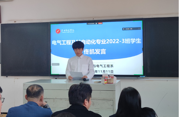 电气工程及其自动化专业2022-3班学生佟凯代表全体实习学生做了表态发言。