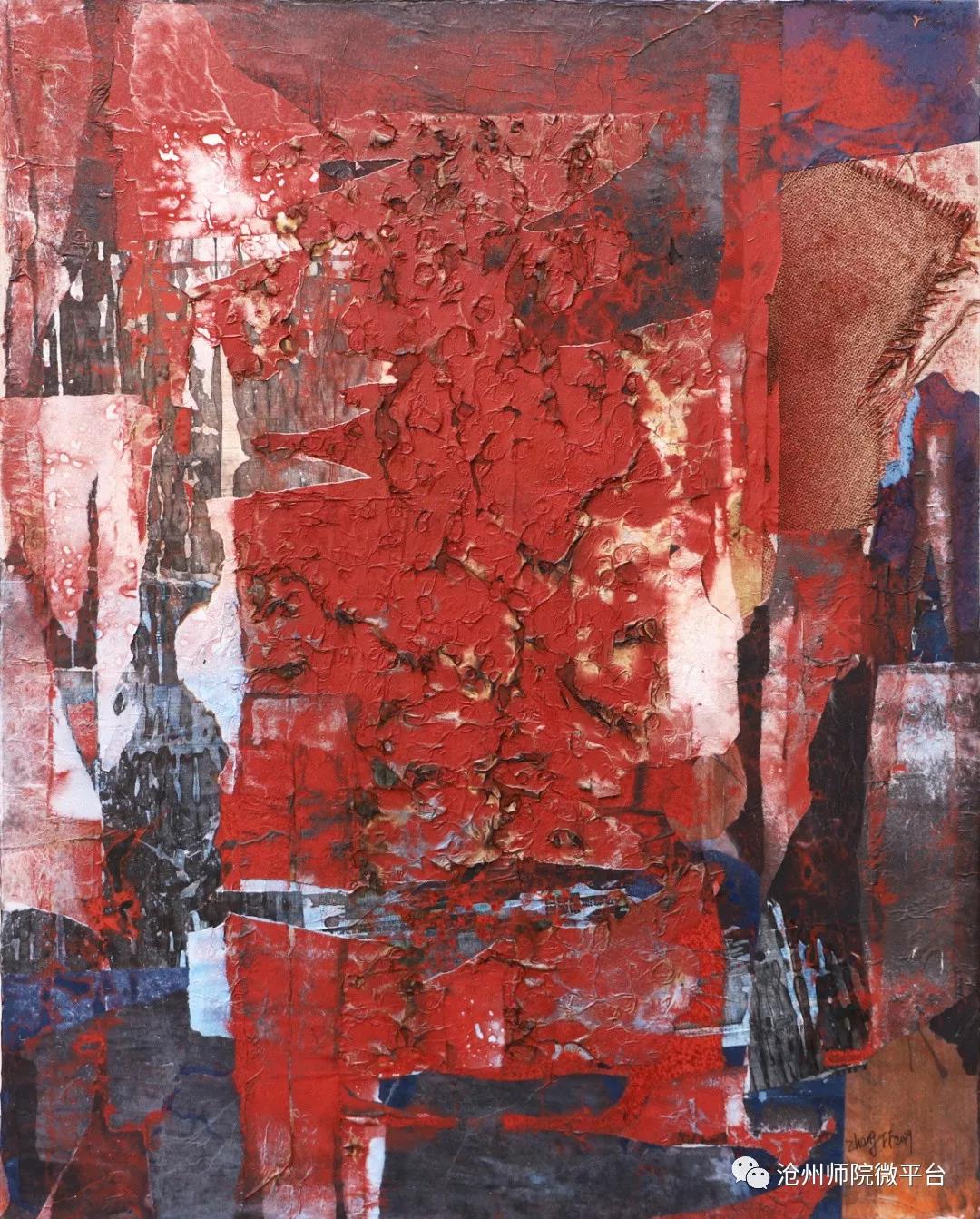 “综合材料绘画突破画种材料语言、造型手段和传统画种工具材料的束缚,创造出新的二维或多维空间的艺术作品,促使当代美术推陈出新。作为一名青年教师,我愿引导更多的同仁参与进来,将学术、科研、教学实践有机结合,实现beat365师生共进的理念。回顾自己的创作实践经历,道路并不平坦,我深知自己还有很多需要学习的地方,此次个展是对前期创作、实践成果的一次梳理和小结,我仍将沿着既定的目标一路前行。”——张菲菲说