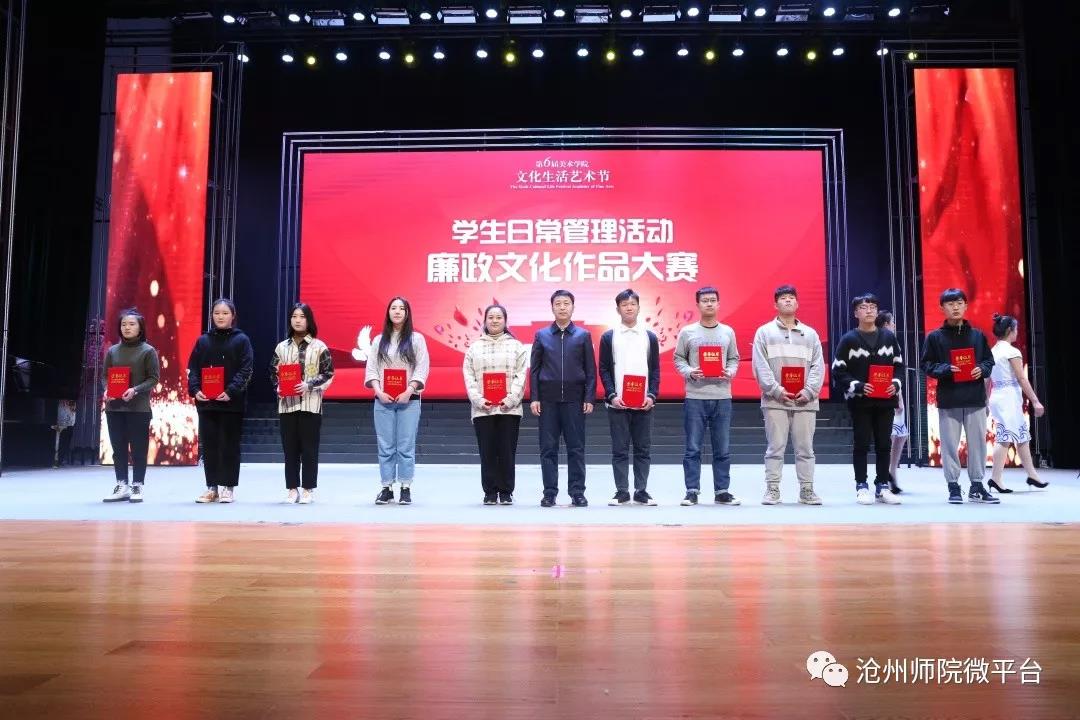 12月12日,beat365美术学院在齐越大讲堂举办第六届文化生活艺术节闭幕式。校党委副书记王双库、姜忠明,副校长高颖,纪委书记谢云岭,新华区教体局副局长刘世荣、运河区教体局教研室主任刘淑华出席。