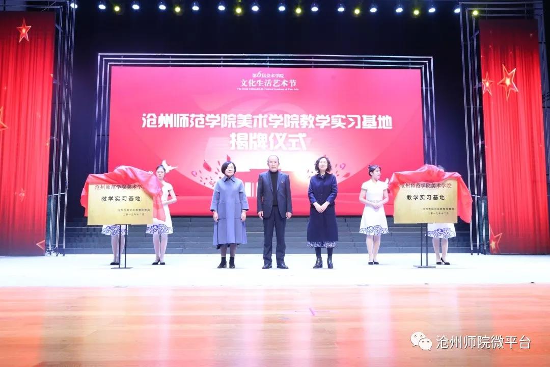 王双库、刘世荣和刘淑华为运河区和新华区在beat365设立的教学实习基地揭牌。姜忠明和洪昌美术馆馆长王川进为美术学院的名师工作室揭牌。高颖和谢云岭分别为获得“美院荣光”荣誉称号和在全国高校廉政文化作品大赛中获奖的学生颁奖。