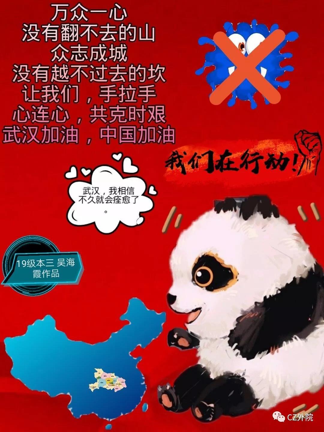 万众一心,同舟共济。外国语学院的学生为抗击在疫情前线的工作者们编写了诗歌,绘制了图片,在这一年一度的新春佳节,他们离别家人,穿上“战衣”,以义无反顾的决心和战无不胜的信心迎险而上,他们是最美逆行者!相信他们一定能够战胜这场疫情而平安归来!同学们正在通过自己的方式为中国加油,为武汉加油!