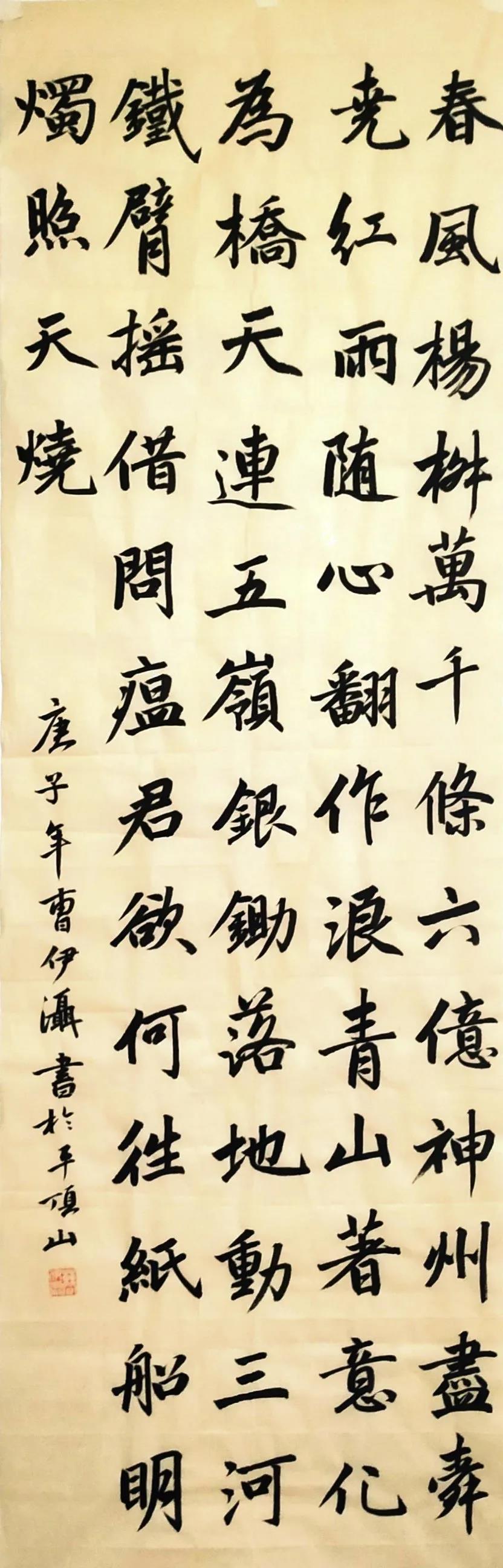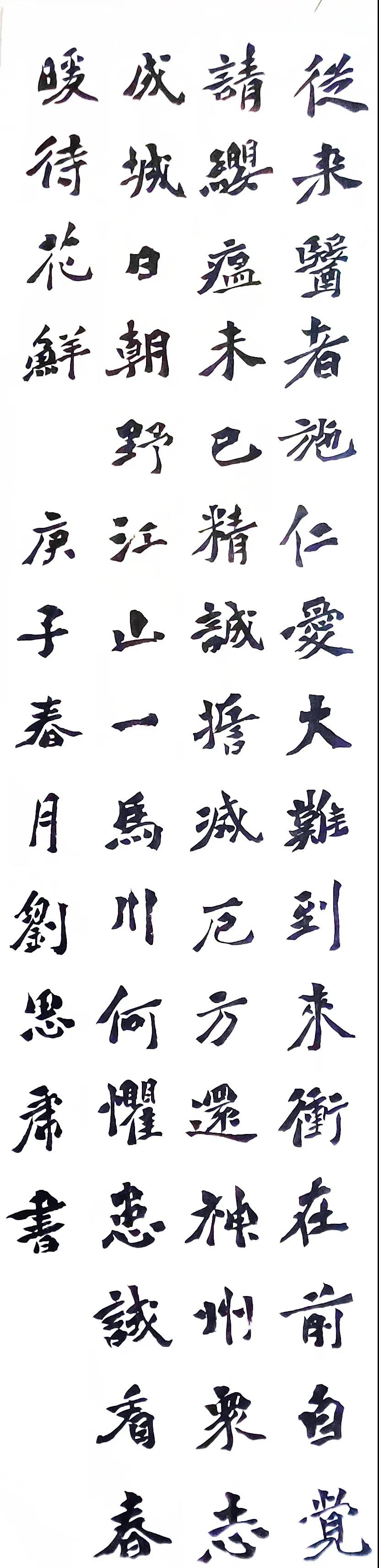 作品释文:从来医者施仁爱,大难到来冲在前。自觉请缨瘟未已,精诚誓减厄方还。神州众志成城日,朝野江山一马川。何惧患城,看春暖,待花鲜。