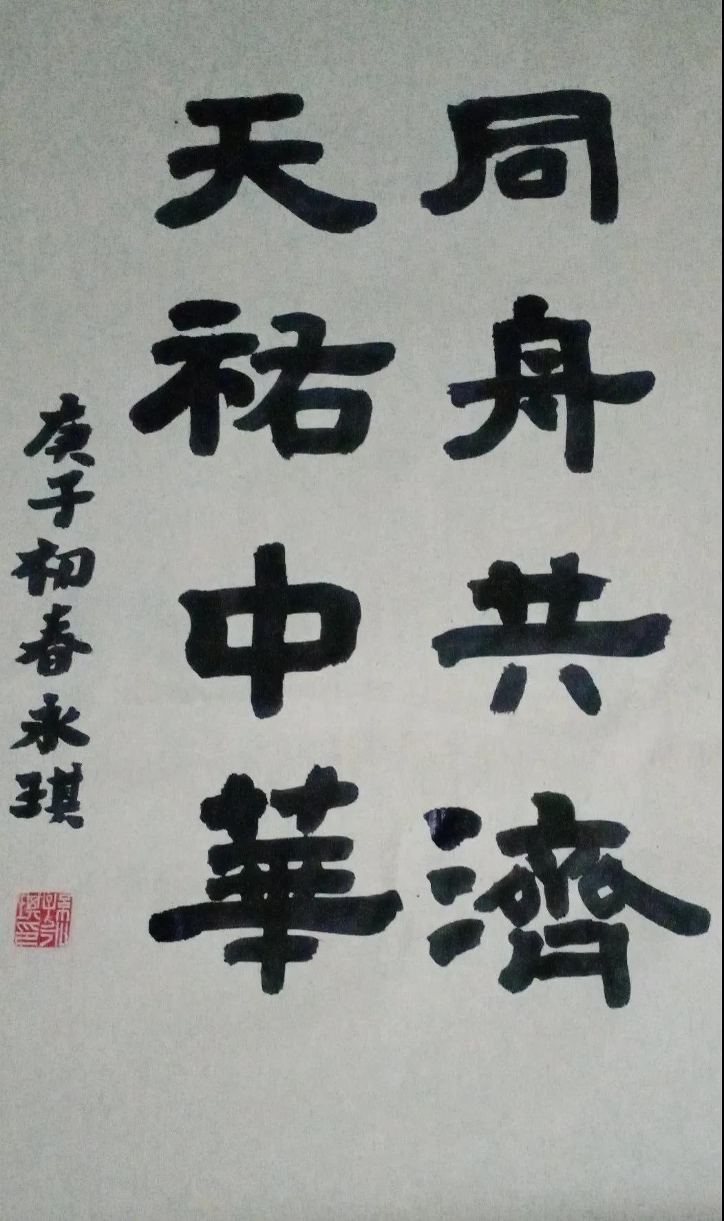 作品释文:齐心协力抗疫情,同舟共济驱瘟神