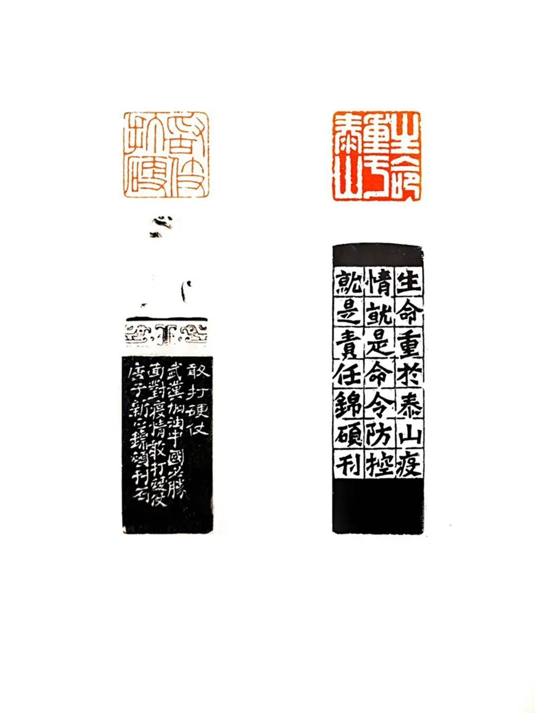作品释文:生命重于泰山,疫情就是命令,防疫就是责任。