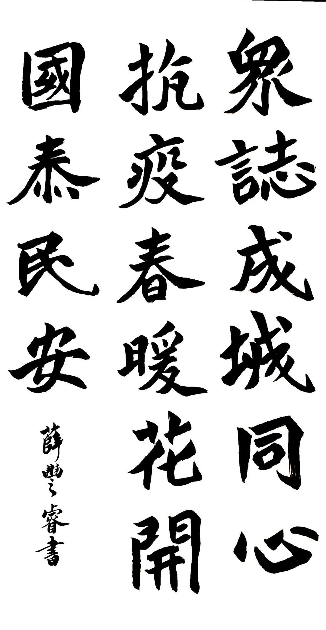 作品释文:众志成城,同心抗疫,春暖花开,国泰民安。