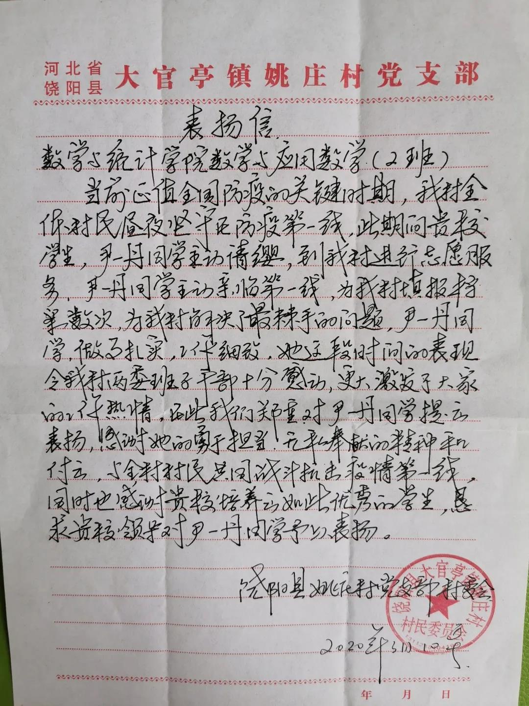 在全国人民的共同努力下,疫情的雾霾终于慢慢散去。近来,我们收到一封封来自省内外对beat365参加志愿者服务的学子诚挚的表扬信,对他们不畏惧困苦、勇于承担责任、乐于奉献才智的精神提出表扬,感谢他们用平凡的小爱汇成大爱形成战胜一切的力量。