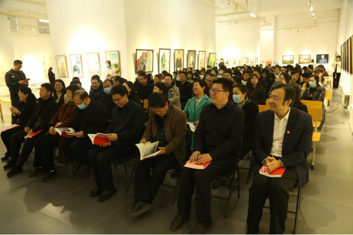 彭学君在致辞中表示,美术学院坚持立德树人,结合自身专业特色充分挖掘“七一勋章”获得者感人事迹,探索出了“思政+专业+实践”的教学新模式,进一步强化了学校美育育人功能,构建了德、智、体、美、劳全面培养的教学体系,引领学生树立了正确的审美观念、陶冶了高尚的道德情操、培养了深厚的民族情感,激发了想象力和创新精神。期望美术学院全体师生以此次活动为契机,继续弘扬功勋模范精神,强化思政育人力量,不断推进学习教育活动走向深入、取得实效,让红色基因、革命薪火代代相传。