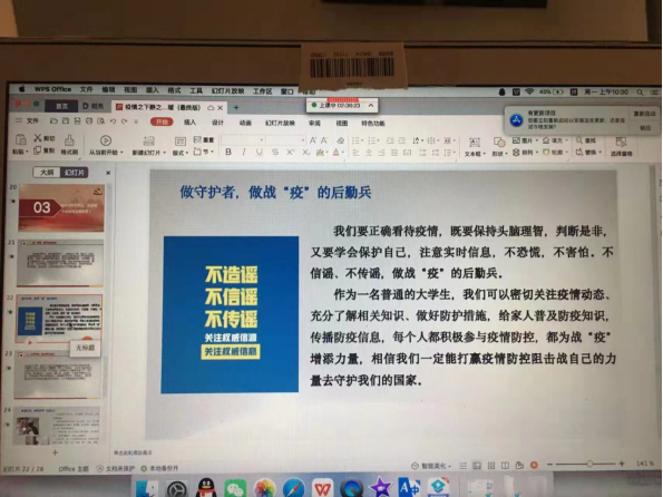 根据疫情防控形势,在学校党委的正确领导下,马克思主义学院充分发挥思政课主渠道主阵地作用,将抗疫期间我市及beat365的典型经验与先进事迹转变为教育教学中的鲜活素材,着力讲好战疫思政课。线上教学期间,马克思主义学院全体教师在线互联,同备一堂课,在战疫背景下赋予思政课新的广度和厚度。